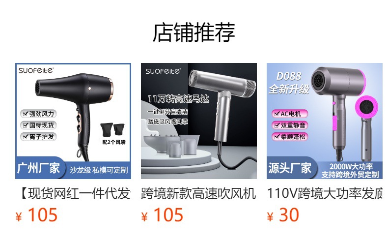Sản phẩm nổi bật với các tính năng: Tiệm làm tóc máy sấy tóc công suất cao gia dụng xuyên biên giới ngoại thương Amazon Nhật Bản và Mỹ quy định máy sấy tóc ion âm 110V. Quý khách có nhu cầu mua Máy sấy tóc nhập khẩu vui lòng liên hệ với chúng tôi để được tư vấn hỗ trợ. Dịch vụ mua hàng Trung Quốc sẽ hỗ trợ quý khách mua hàng từ nhà cung cấp và giao tới tận tay quý khách hàng..