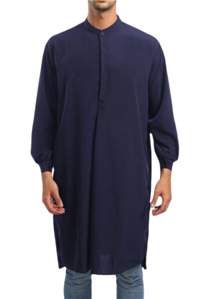 Tiếng Ả Rập Phong Cách Thời Trang Đơn Giản Dài Áo Sơ Mi Nam AliExpress CHÚC Mới Đồng Màu Hồi Giáo Áo Dây