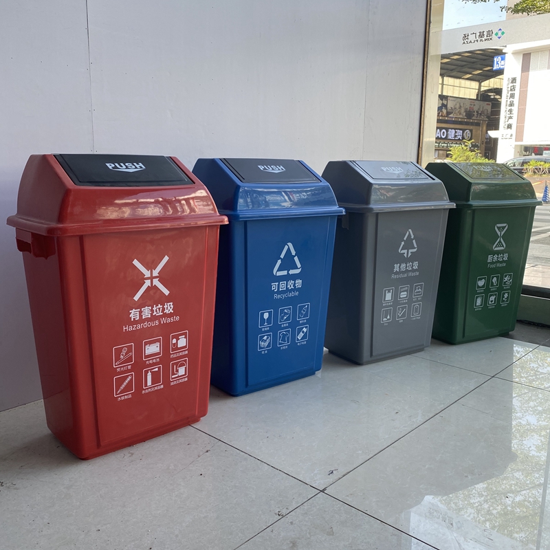 Tiêu chuẩn quốc gia mới bao phủ phân loại thùng rác ngoài trời nhựa lớn có thể tái chế nhà bếp có hại khác bốn màu Quảng Đông là lựa chọn lý tưởng cho không gian công cộng, sân vườn hoặc khu đô thị. Sản phẩm giúp nâng cao hình ảnh chuyên nghiệp và sạch đẹp cho môi trường sống.