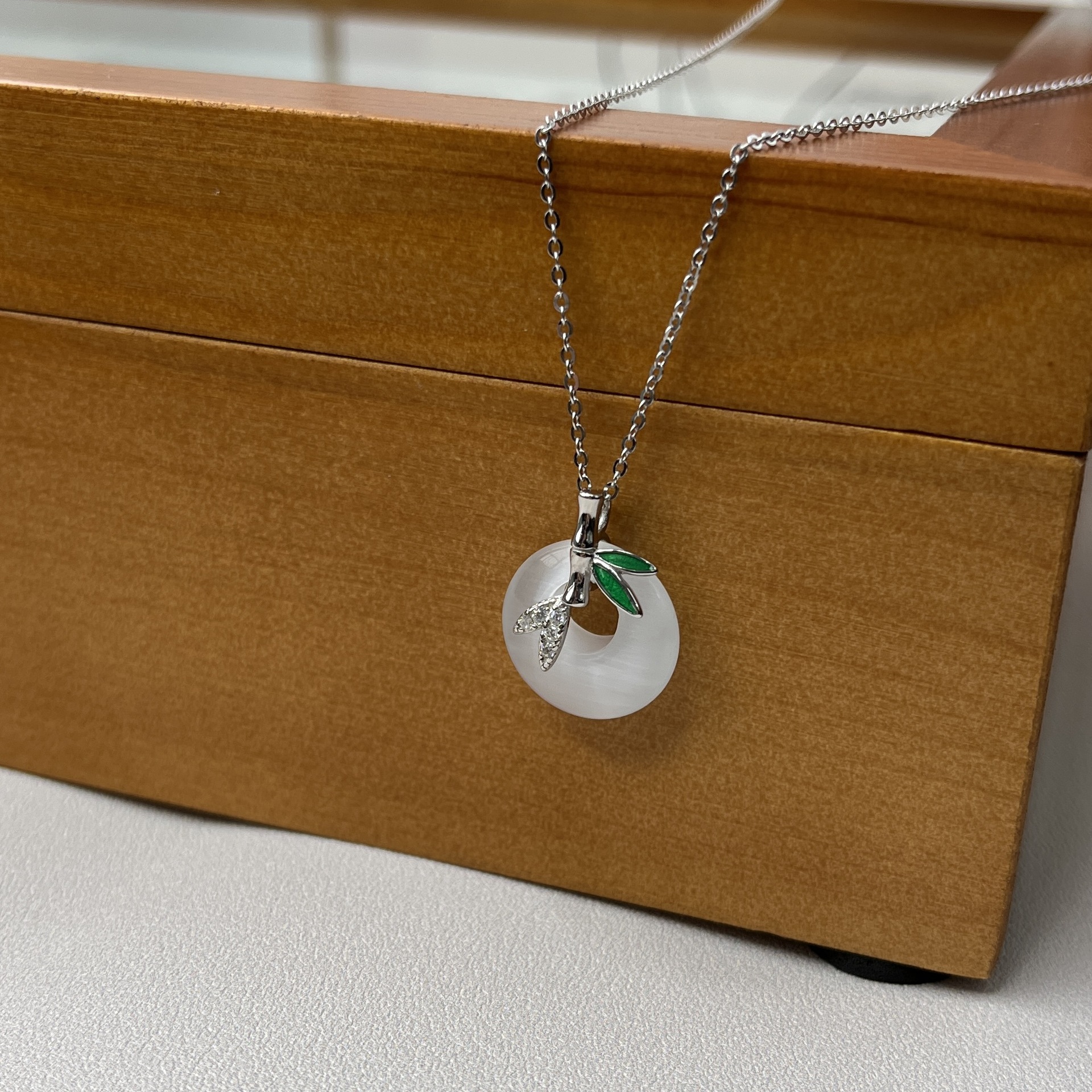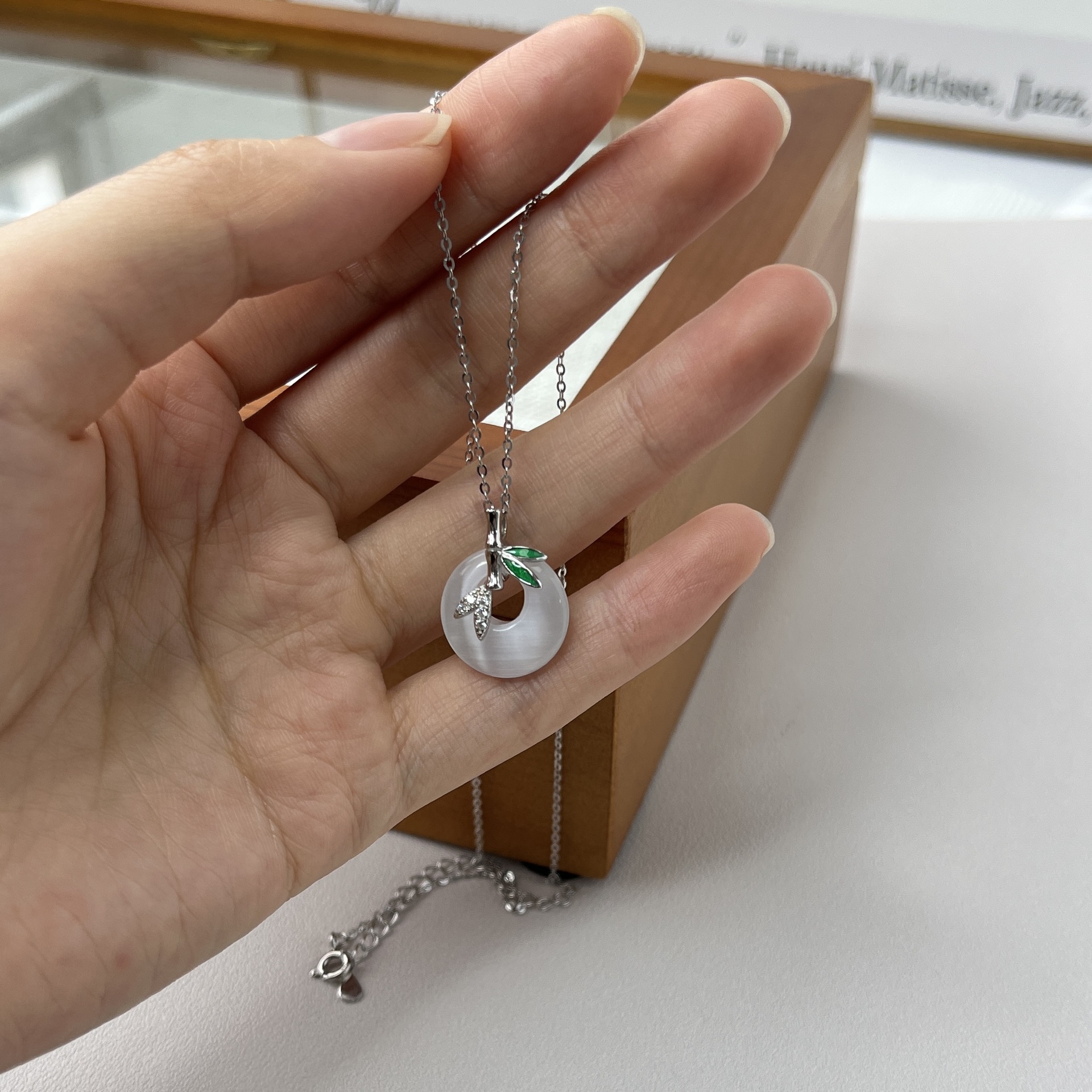 Tiki bạc 925 chalcedony hoa cẩm chướng mắt mèo khóa an toàn vòng cổ phong cách Trung Hoa mới thiết kế hốc xương đòn chuỗi ánh sáng sang trọng