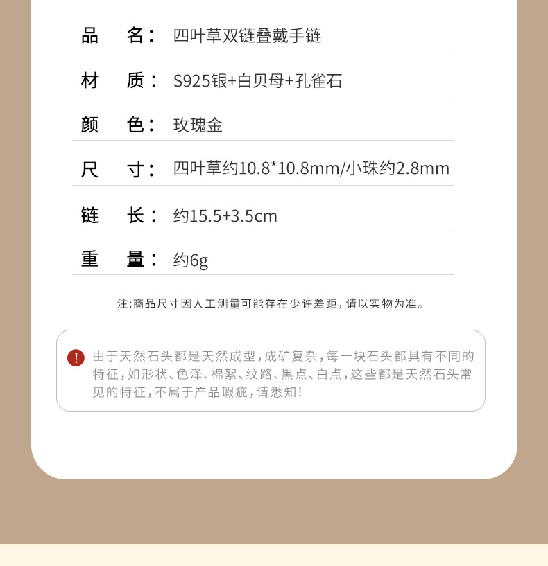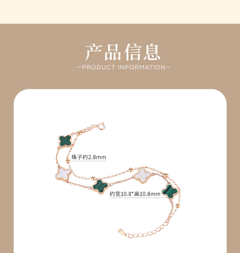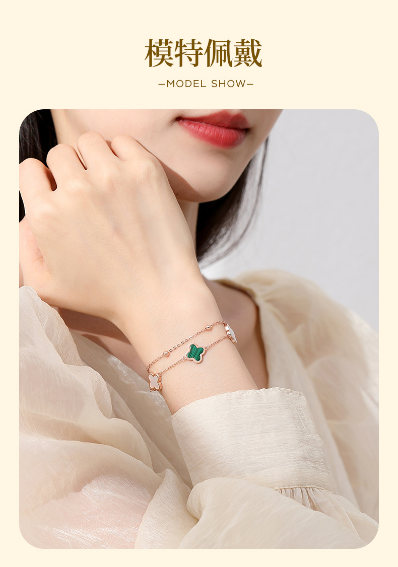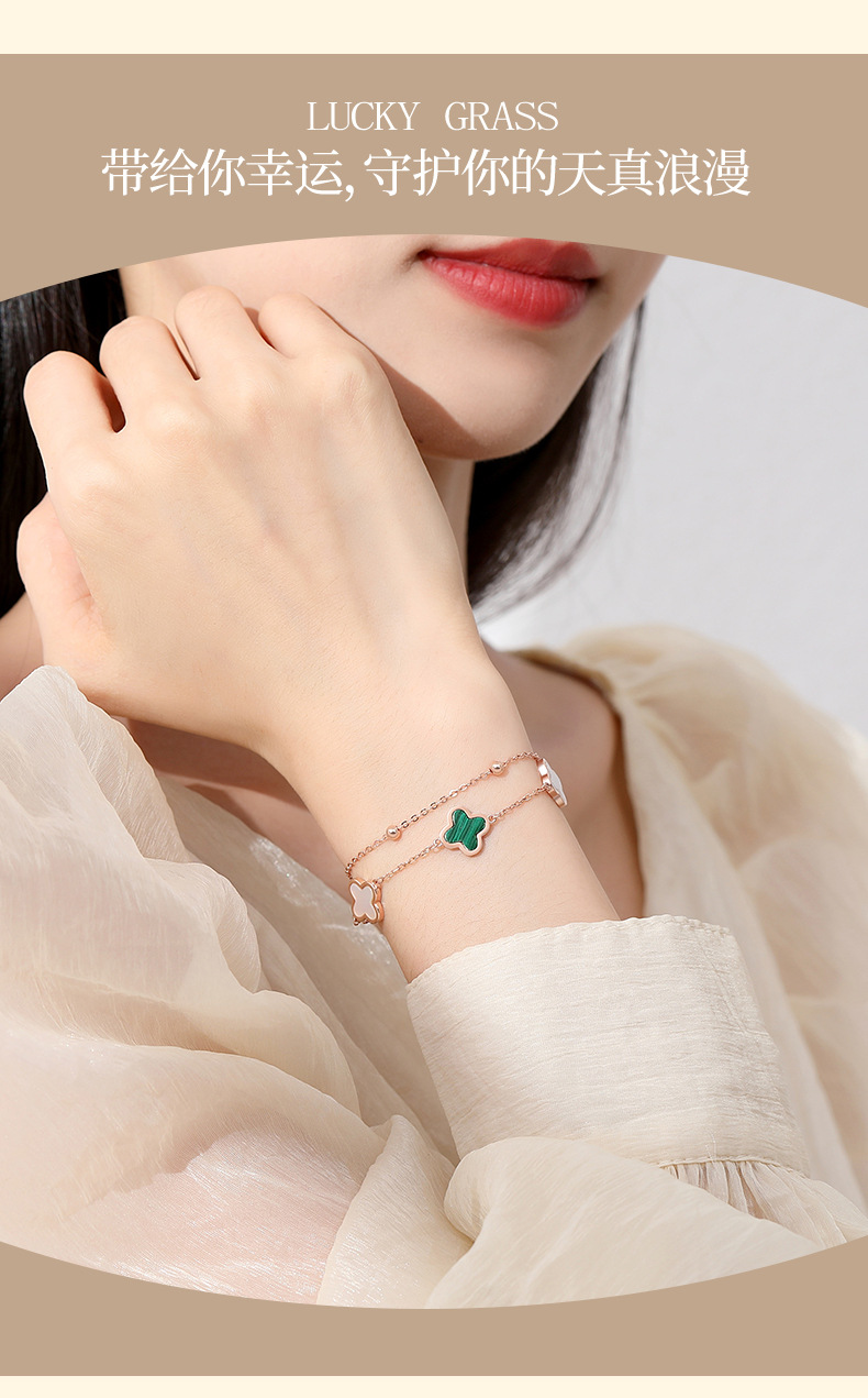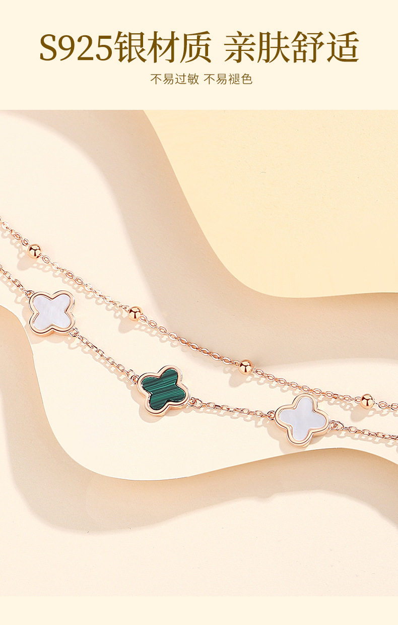 Tikia Thật Bắn Ánh Sáng Thời Trang Cao Cấp Bạc 925 Đá Malachite Cỏ Bốn Lá Vòng Tay Nữ Đôi Hoa Hồng Vàng Tay Trang Sức