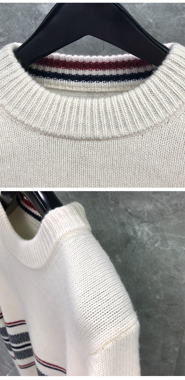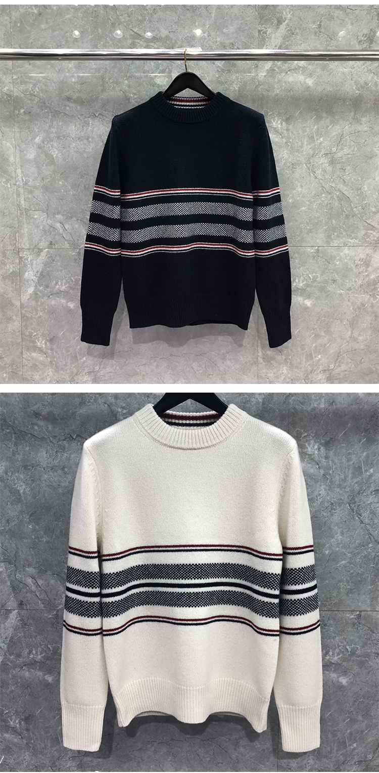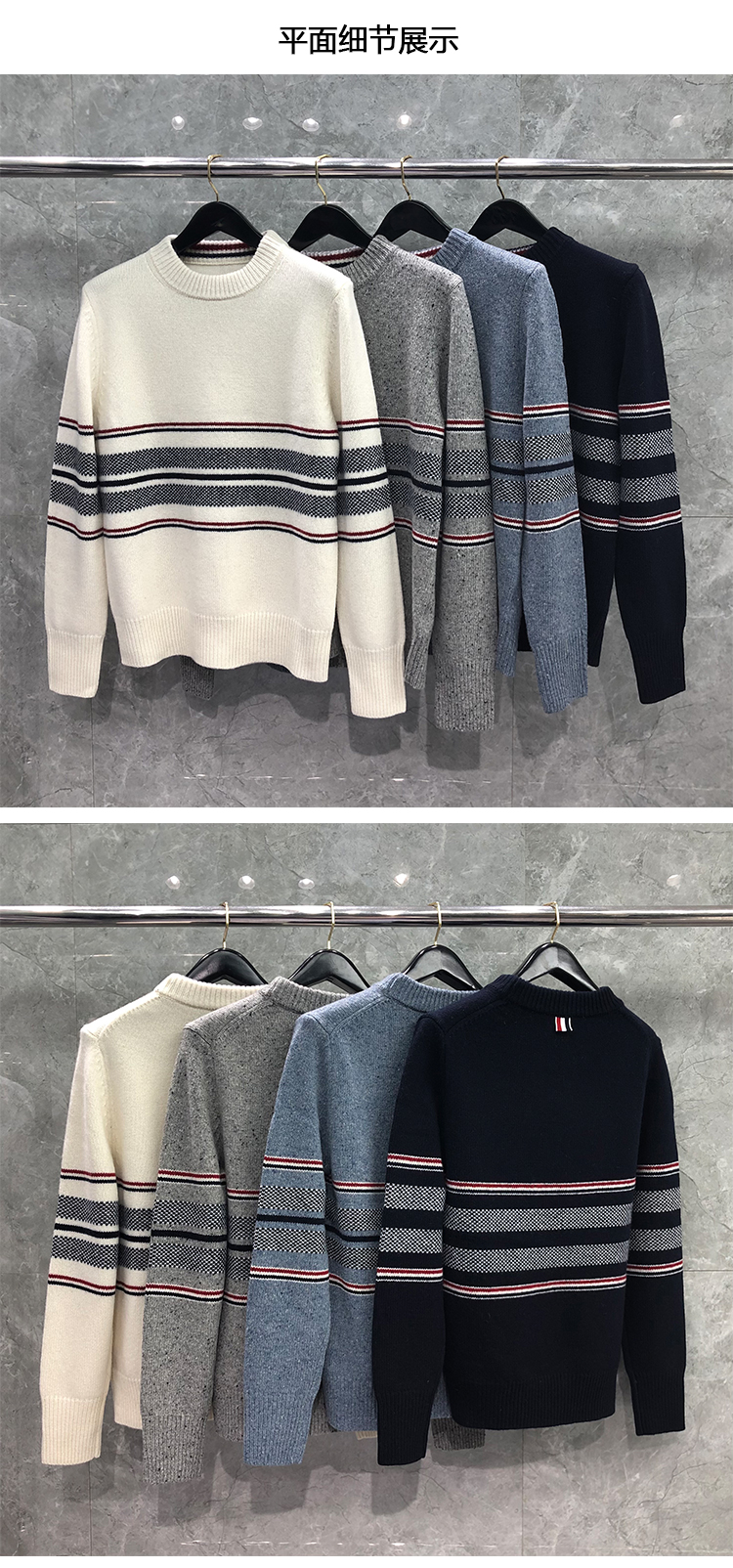 TIME BREATHE TB áo len nam dệt kim mắt chim mới áo thun cổ tròn màu đỏ, trắng và xanh áo len TB đáy
