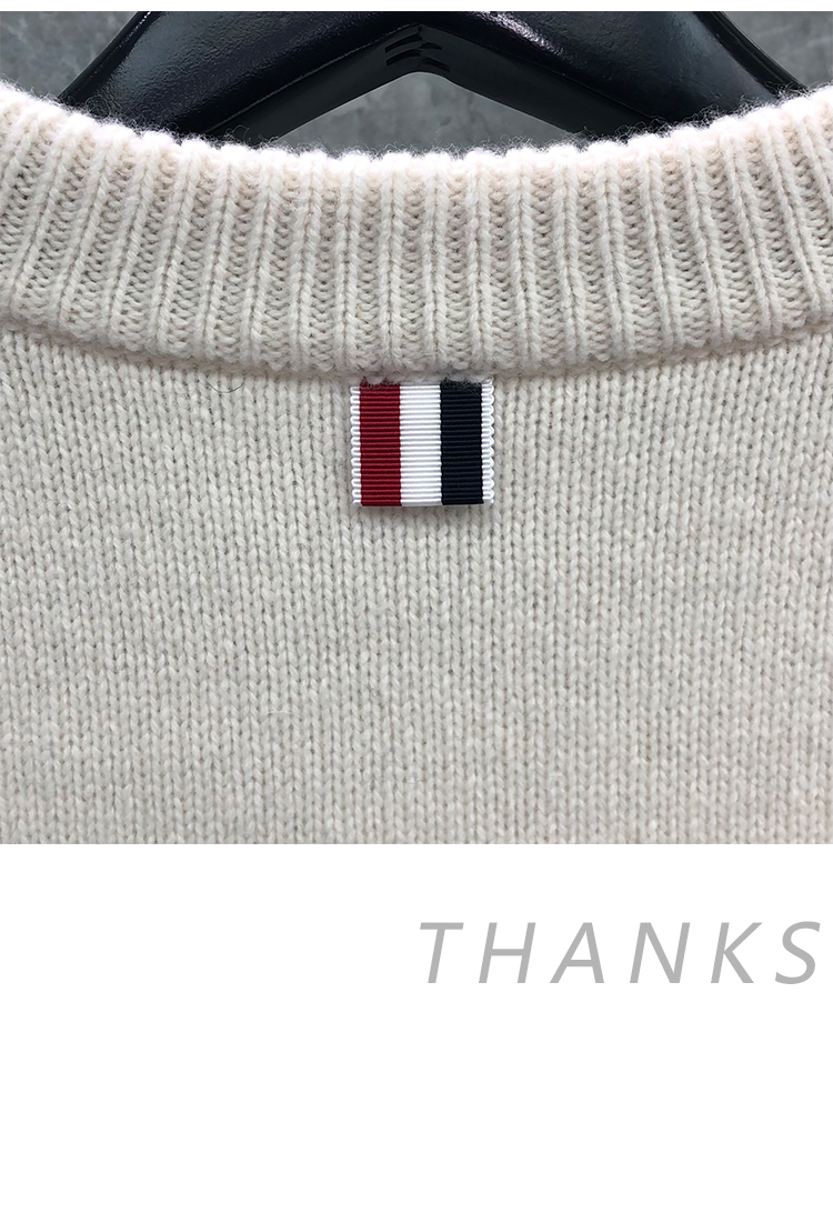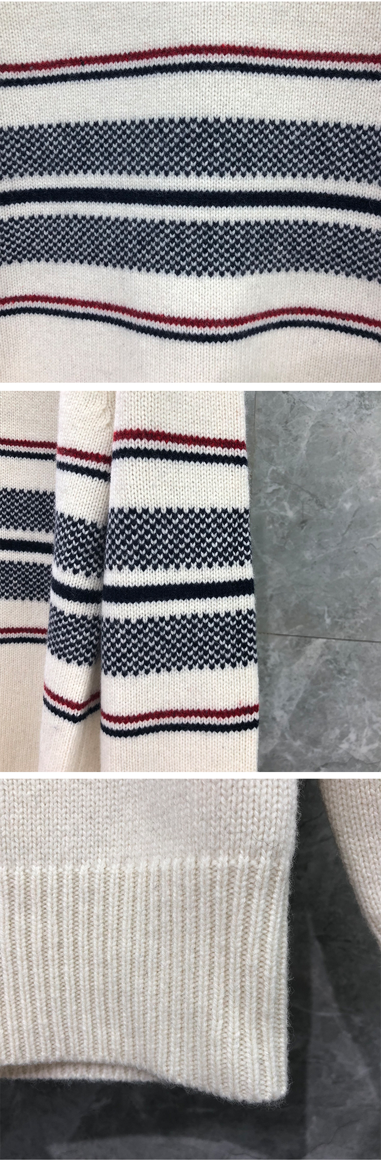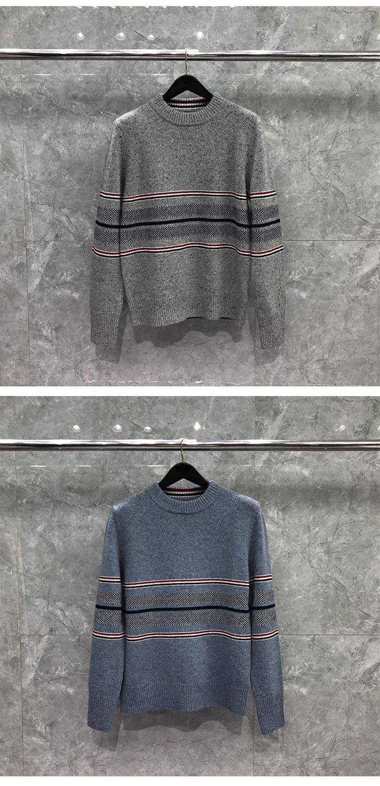 TIME BREATHE TB áo len nam dệt kim mắt chim mới áo thun cổ tròn màu đỏ, trắng và xanh áo len TB đáy