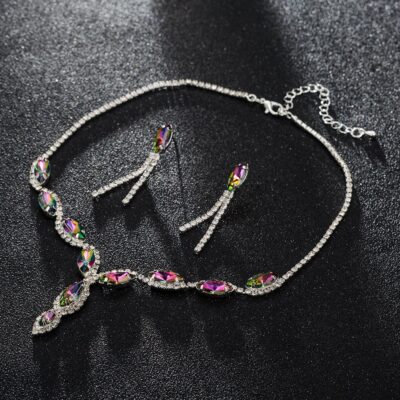Tinh Tế Giọt Nước Pha Lê Kim Cương Vòng Cổ Bộ Bông Tai Cưới Cô Dâu Phụ Kiện Trang Phục Sỉ N100