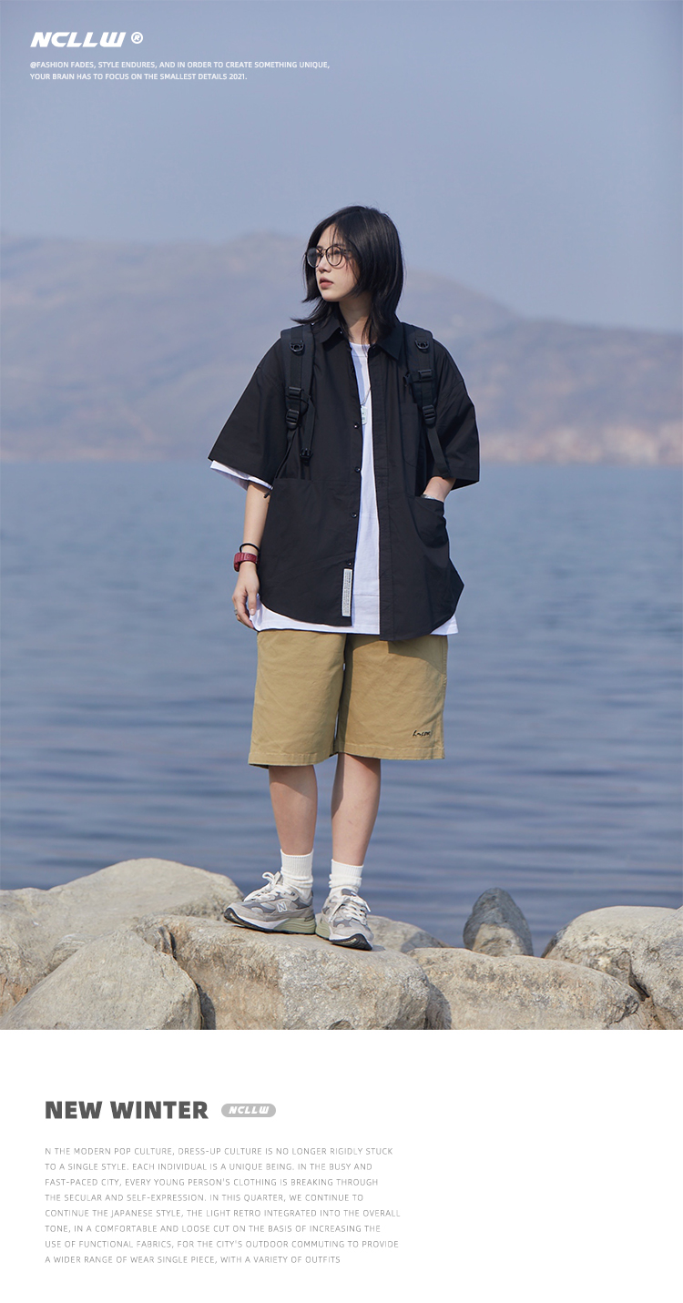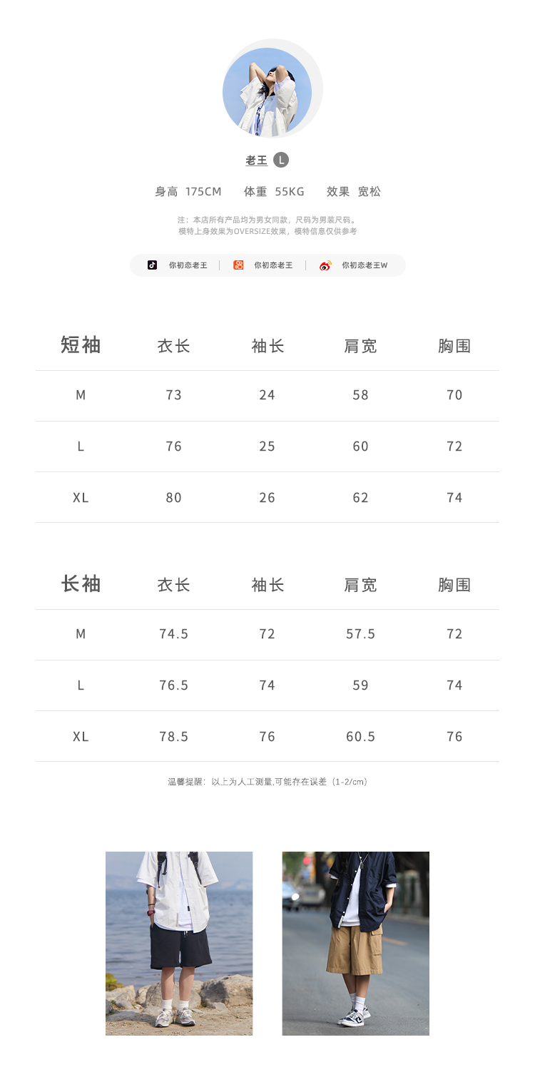 Tình yêu đầu tiên của bạn Lao Wang Nhật Bản công cụ retro áo sơ mi ngắn tay nam thủy triều thương hiệu bf lười gió áo khoác nửa tay áo sơ mi nữ