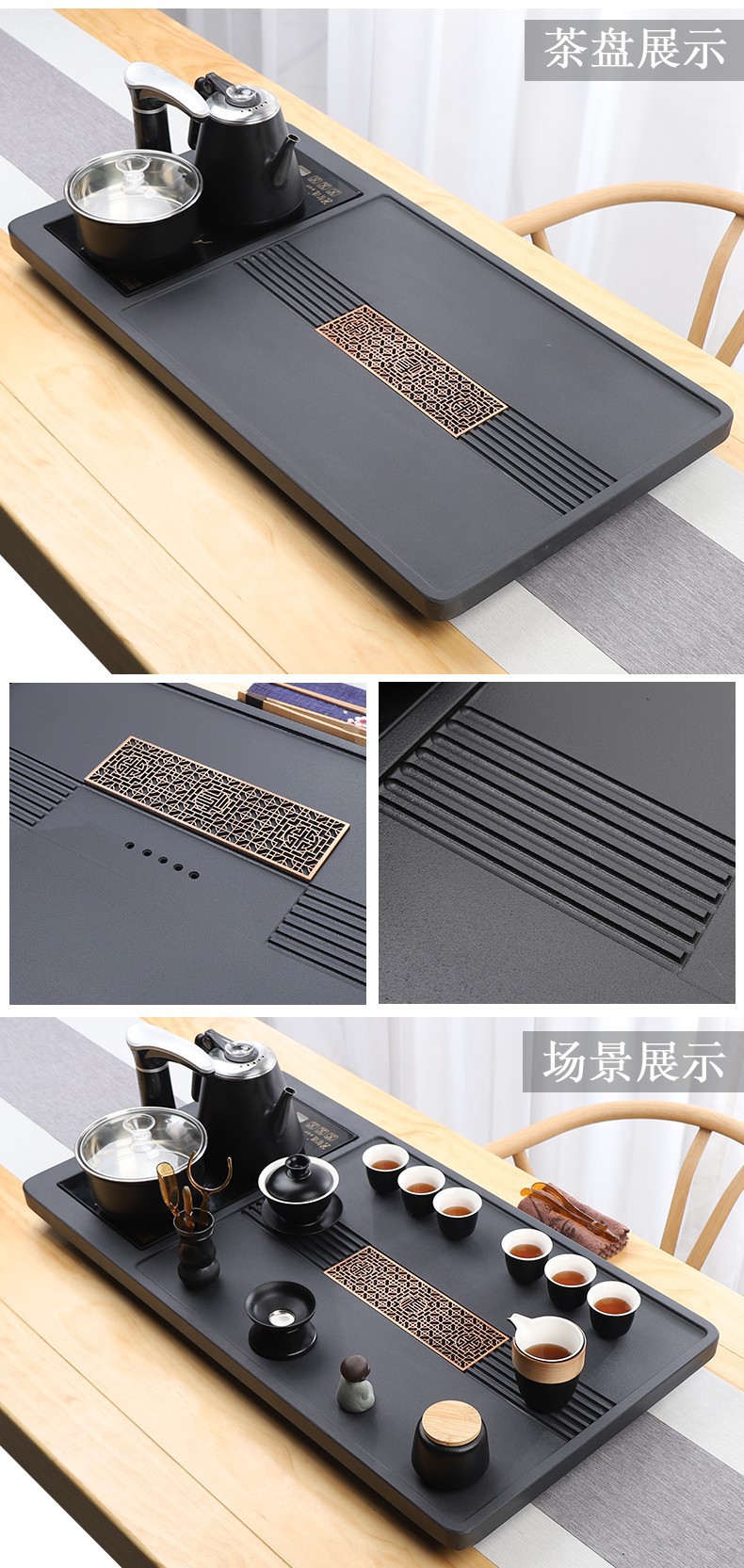 Toàn bộ khay trà đá vàng đen hoàn toàn tự động tích hợp bộ trà gia đình kung fu cảm ứng phòng khách bàn trà lớn tự nhiên