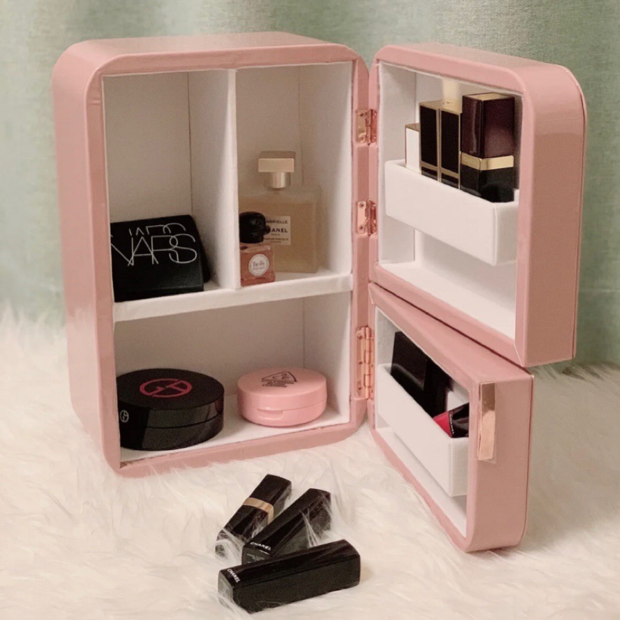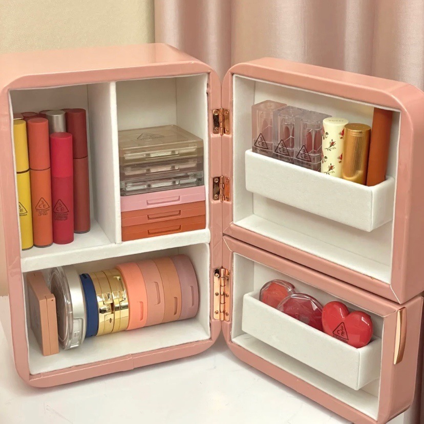 Tôi thích nó rất nhiều ~ 3ce spot hộp đựng tủ lạnh nhỏ màu hồng tổ chức hộp trang điểm cảm giác nữ tính đầy màu hồng và dịu dàng