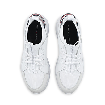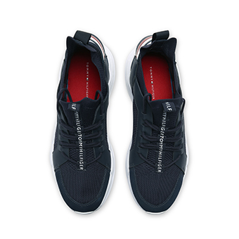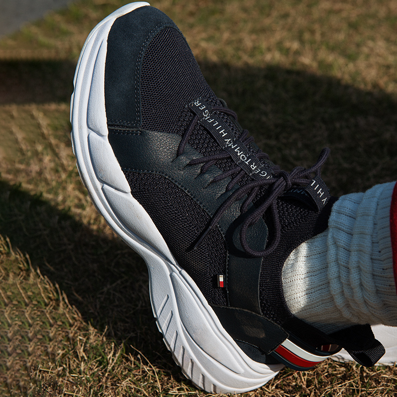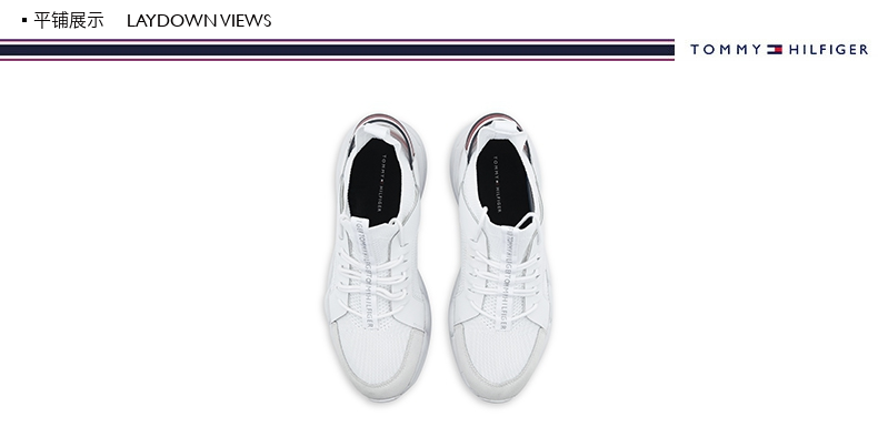 Tommy nam giới giản dị thoáng khí ngăn màu sọc LOGO vải dày đáy giày thể thao tăng chiều cao FM0FM02739