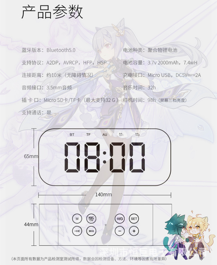 Phiên bản Bluetooth: 5.0 Thương hiệu: Jiemanyuan Số lượng loa: 2 Được cấp bằng sáng chế hoặc không Nguồn hàng: Không Màu sắc: Tùy chỉnh / Tomorrow’s Ark / Đội tuyển quốc gia 02 / Flandre Remilia / Izumi Missa / Ramrem / Remilia Sakuya / Kuangsan / Qiongmei / Mai / Paojie / Irena / Kotori / Hatsune / Hatsune Dải âm thanh: 100HZ-20KHZ Công suất định mức: 10 Cho dù Pin tích hợp: Được tích hợp -in Thông số kỹ thuật của pin: Chất liệu hộp loa Bluetooth không dây: Nhựa Cấp độ chống thấm nước: IPX 2 Các nền tảng hạ nguồn chính: Khác Thời gian tung ra thị trường: 2022 Phương thức kết nối: Giắc cắm âm thanh 3,5MM Điện áp định mức: 5 Các chức năng bổ sung: Thẻ cắm/đồng hồ báo thức/Đồng hồ báo thức Khoảng cách hiệu quả: 10 mét