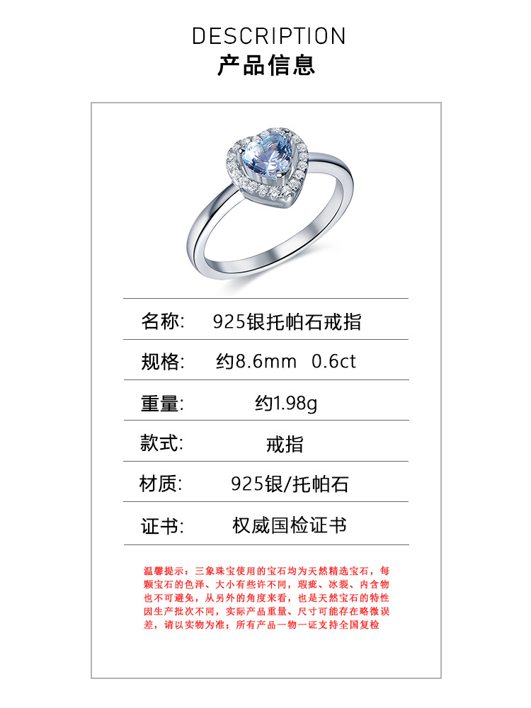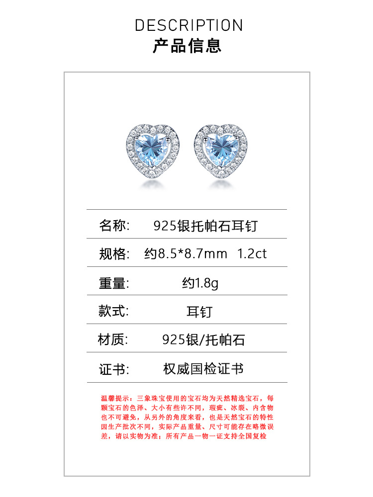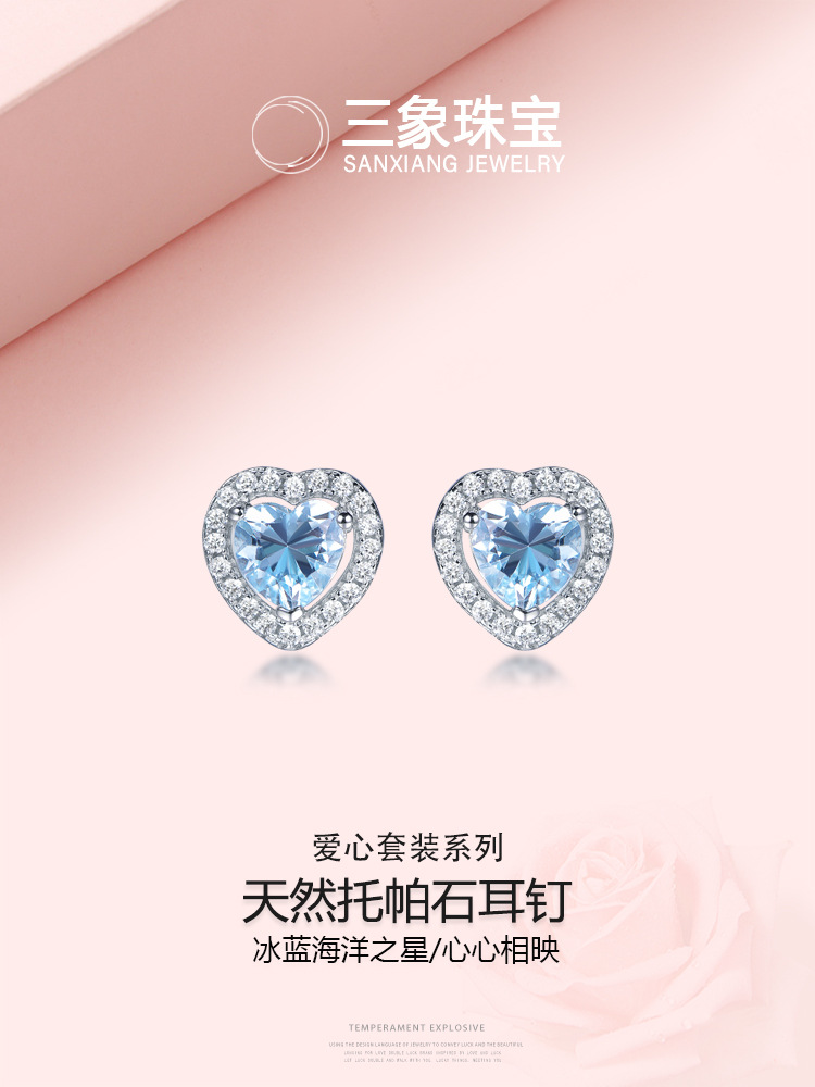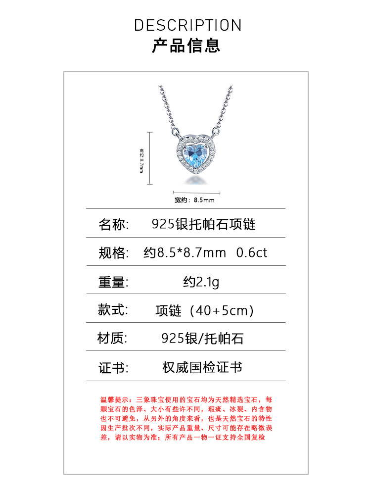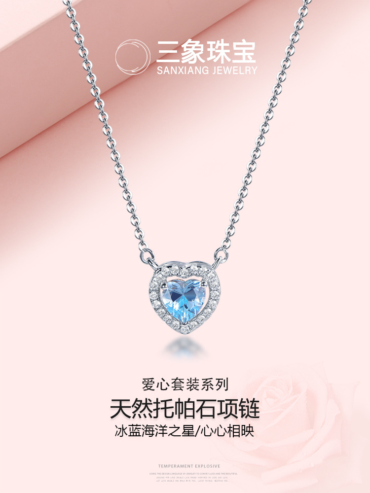Topaz Vòng Cổ Trái Tim Bạc 925 Đá Quý Tự Nhiên 3 Bộ Phù Hợp Với Ánh Sáng Sang Trọng Đơn Giản Nhẫn Bông Tai Vòng Cổ nữ lô