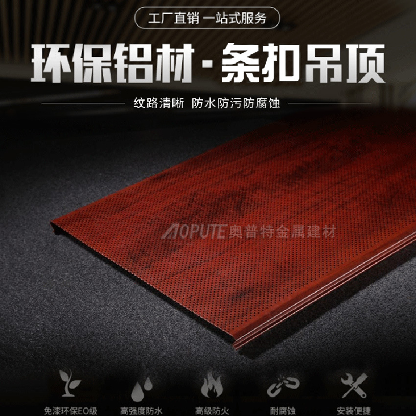 ◆勾搭型条扣利用龙骨巧妙地将板面连接成一个整体,板面与板面之间环环相扣、无缝成型,形成完美的整体视觉效果,由于其设计独特,能够均匀受力,所以只需要轻质板材即可在风速大的通道、走廊安装,牢固耐用。
