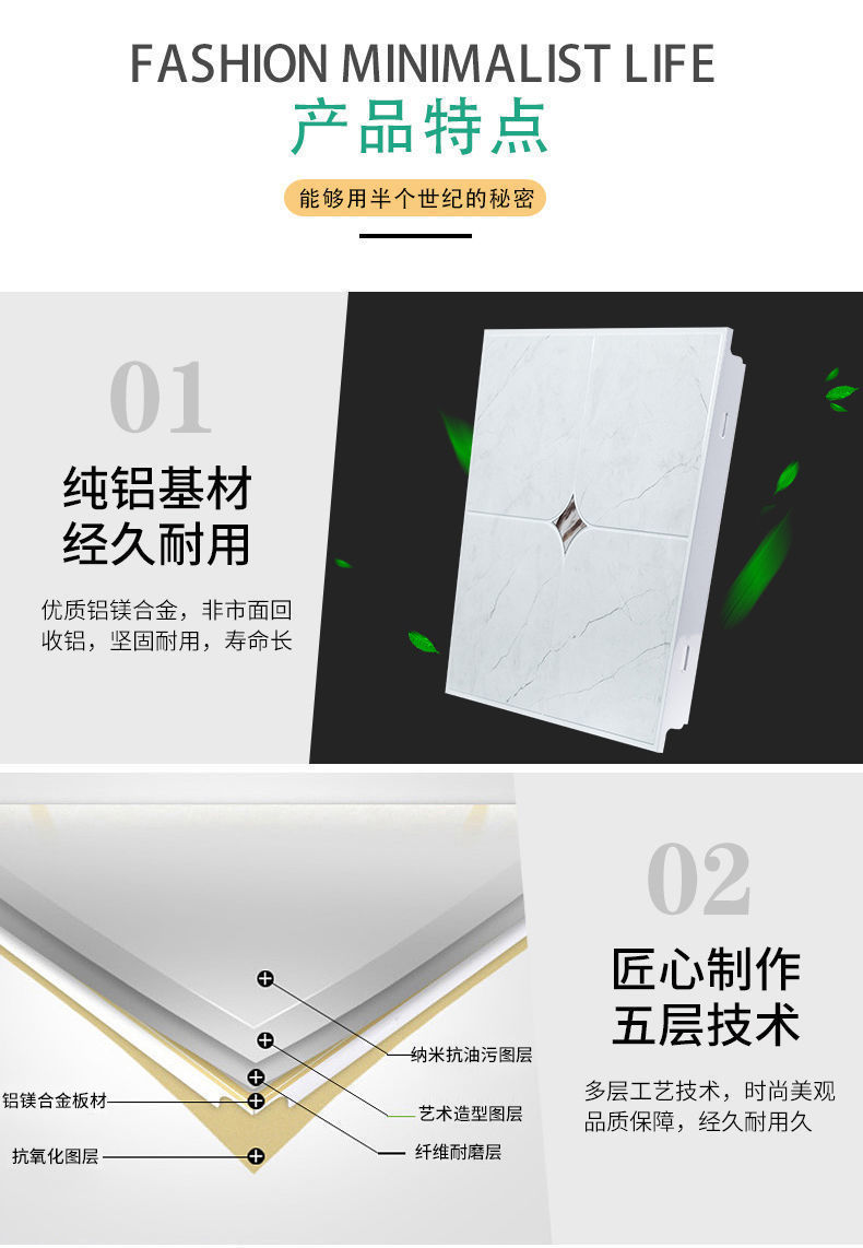 Trần tích hợp tấm khóa nhôm trang trí trần nhà bếp phòng tắm bộ vật liệu chống ô nhiễm dầu nhà máy bán hàng ký gửi trực tiếp nóng