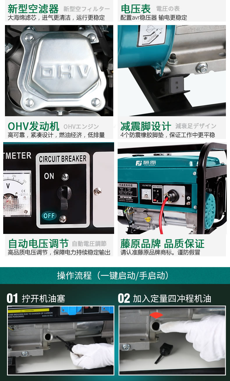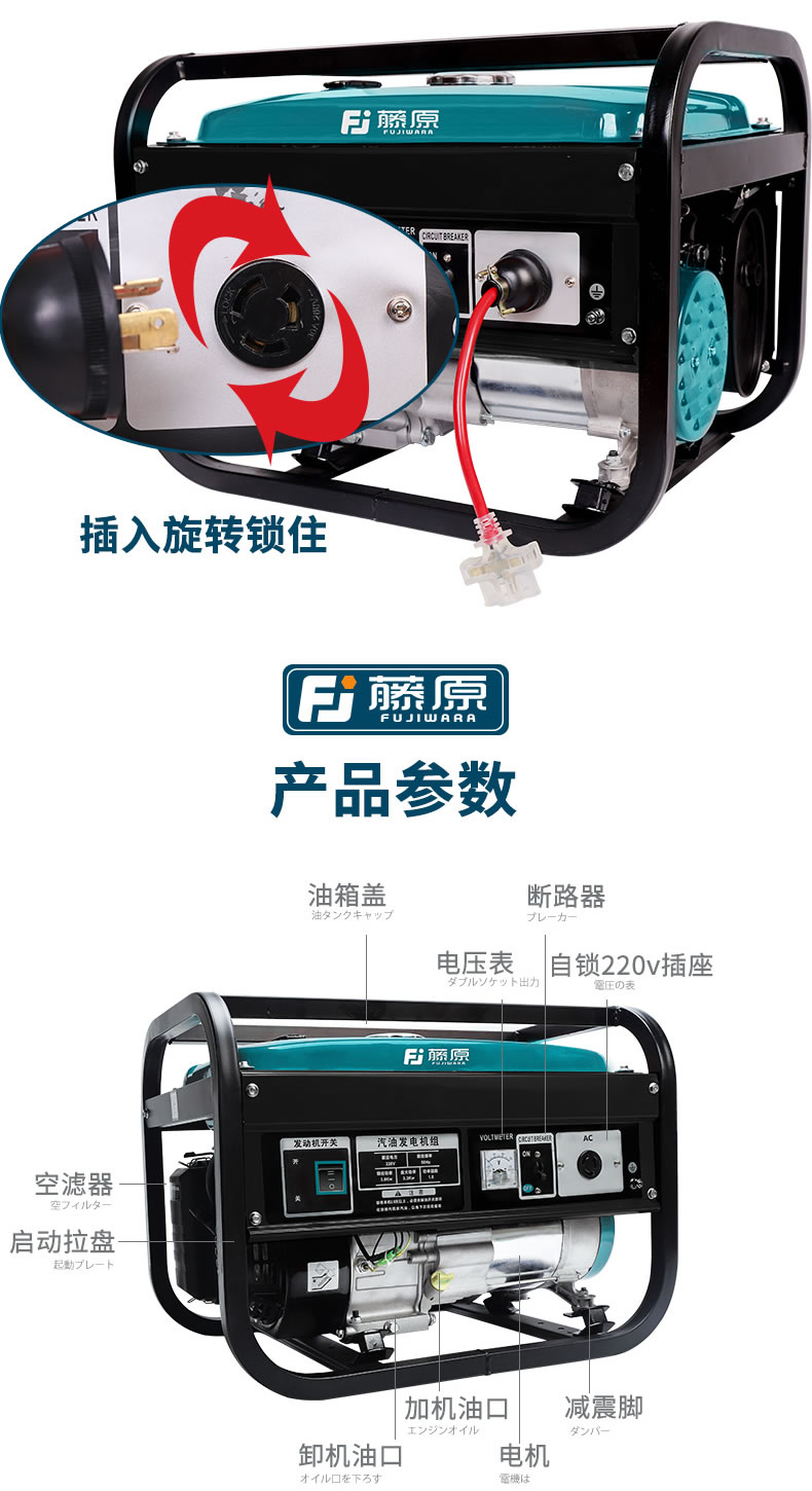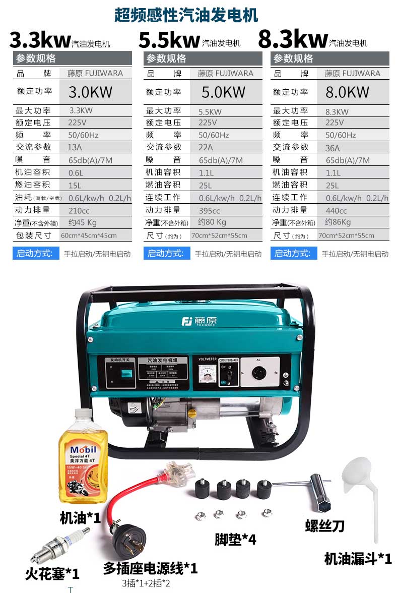 Trang chủ máy phát điện chạy xăng Fujiwara 220v khởi động điện nhỏ không ồn một pha 3kw5kw8kw máy phát điện