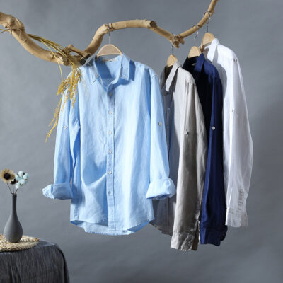Trắng Dài Tay Áo Sơ Mi Linen Nam Chống Nắng Thoải Mái Thoáng Khí Mềm Mại Và Áo Sơ Mi Linen Xu Hướng Nam M0501