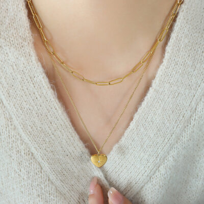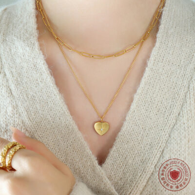 Trang sức châu Âu và Mỹ hai lớp hình trái tim mans ngôi sao khảm zircon mặt dây chuyền vòng cổ titan thép mạ vàng 18k ánh sáng sang trọng trang sức phong cách ins