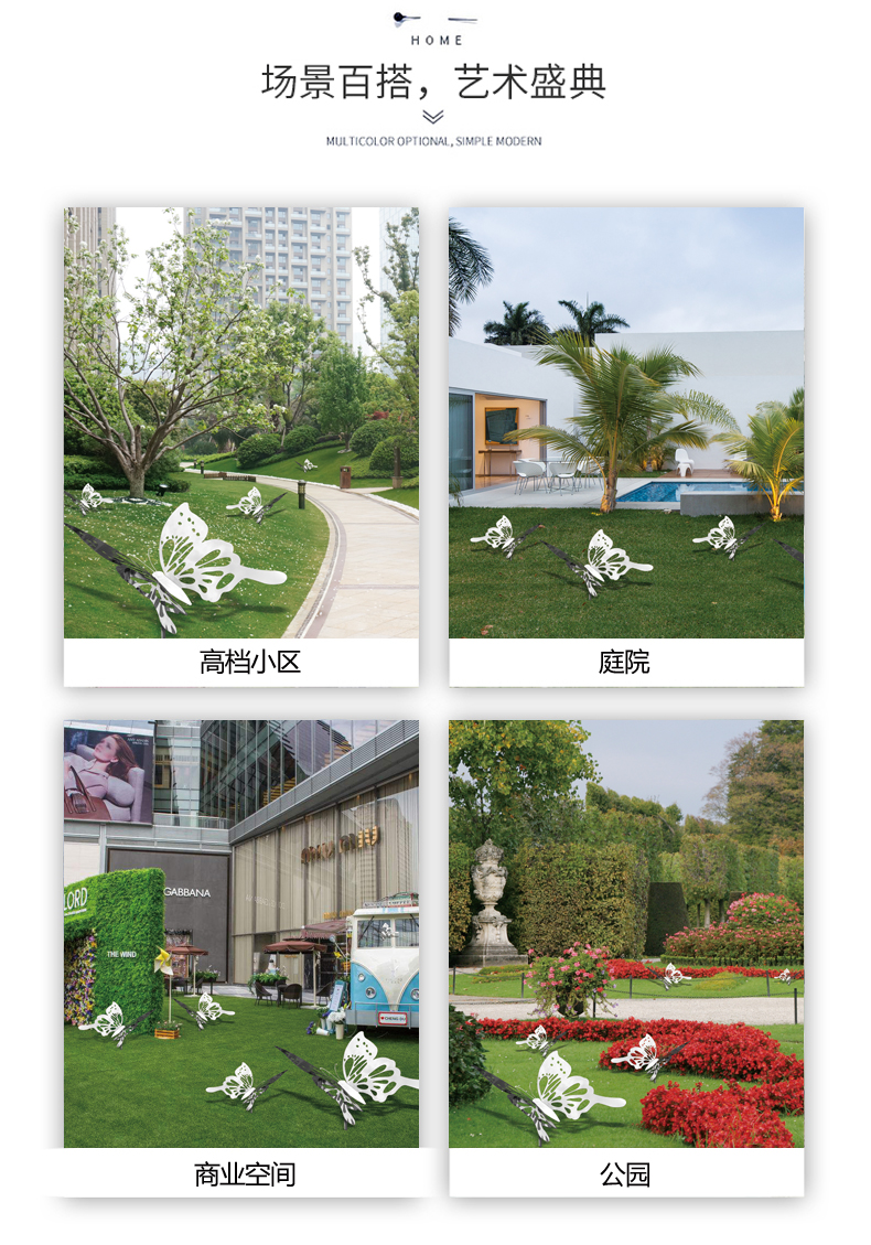 Sản phẩm nổi bật với các đặc điểm: Trang trí bướm bằng thép không gỉ Ngoài trời Thành phố Quảng trường Cảnh quan Công viên điêu khắc Trang trí Kim loại Vườn Trang trí Côn trùng
