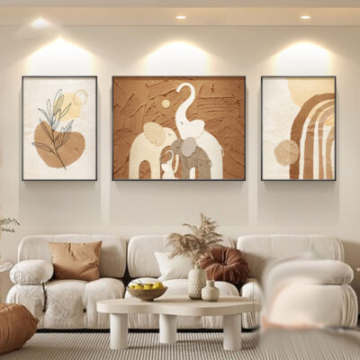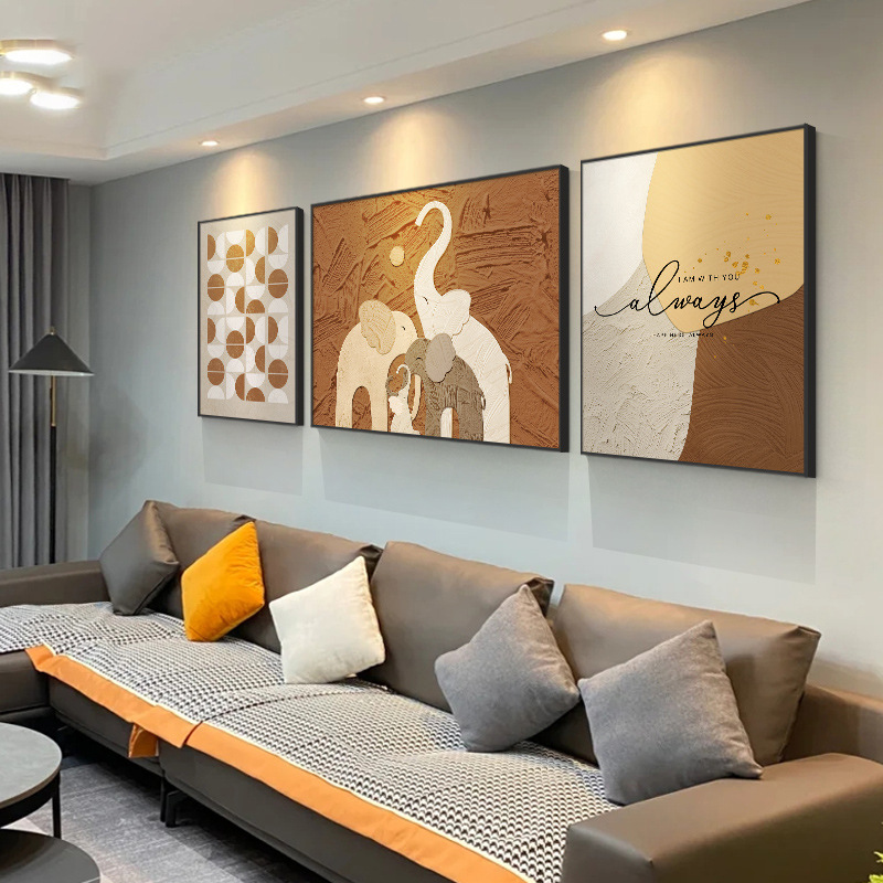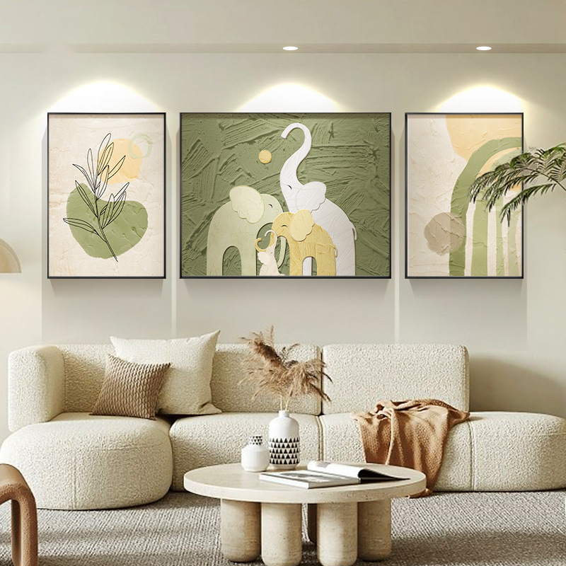 Trang trí phòng khách tranh hiện đại tối giản sofa nền tranh treo tường họa tiết trừu tượng tranh gió Bắc Âu voi bộ ba