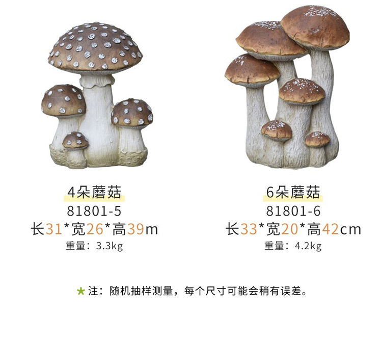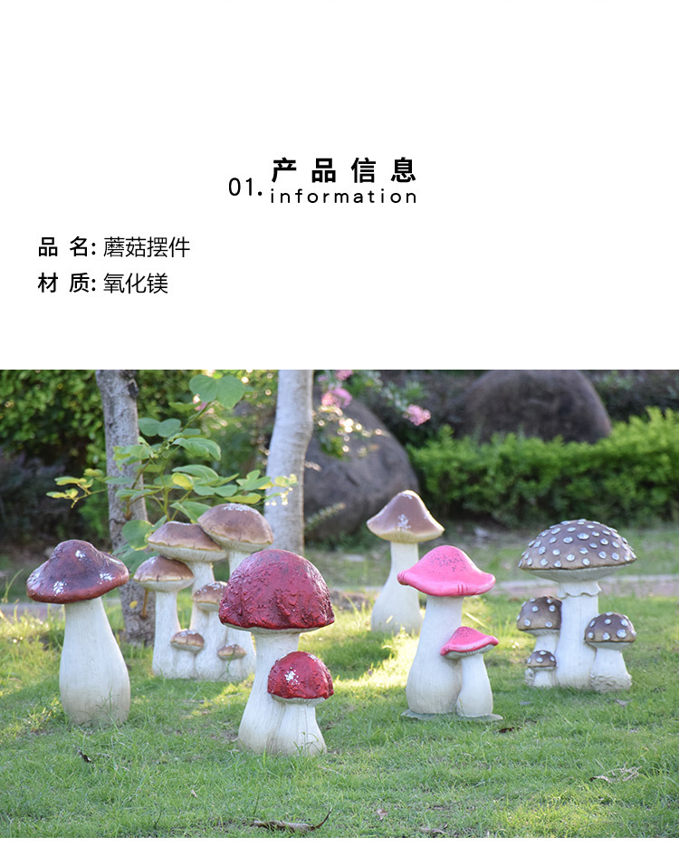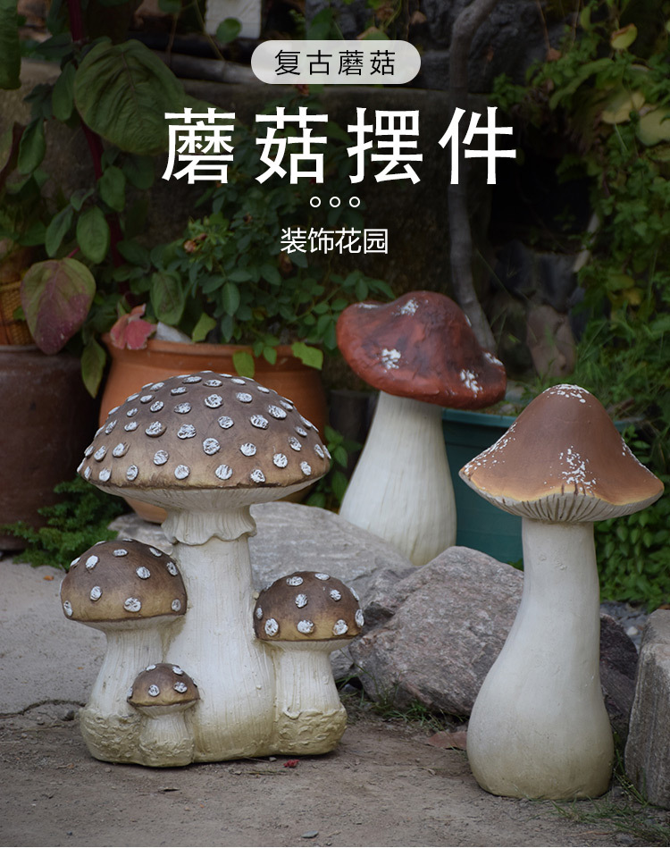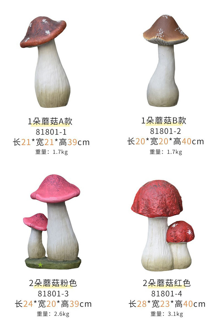 Trang trí sân vườn ngoài trời, tác phẩm điêu khắc nấm thực vật mô phỏng, đồ trang trí cổ điển, thủ công mỹ nghệ, cảnh quan sân vườn là lựa chọn lý tưởng cho không gian công cộng, sân vườn hoặc khu đô thị. Sản phẩm giúp nâng cao hình ảnh chuyên nghiệp và sạch đẹp cho môi trường sống.