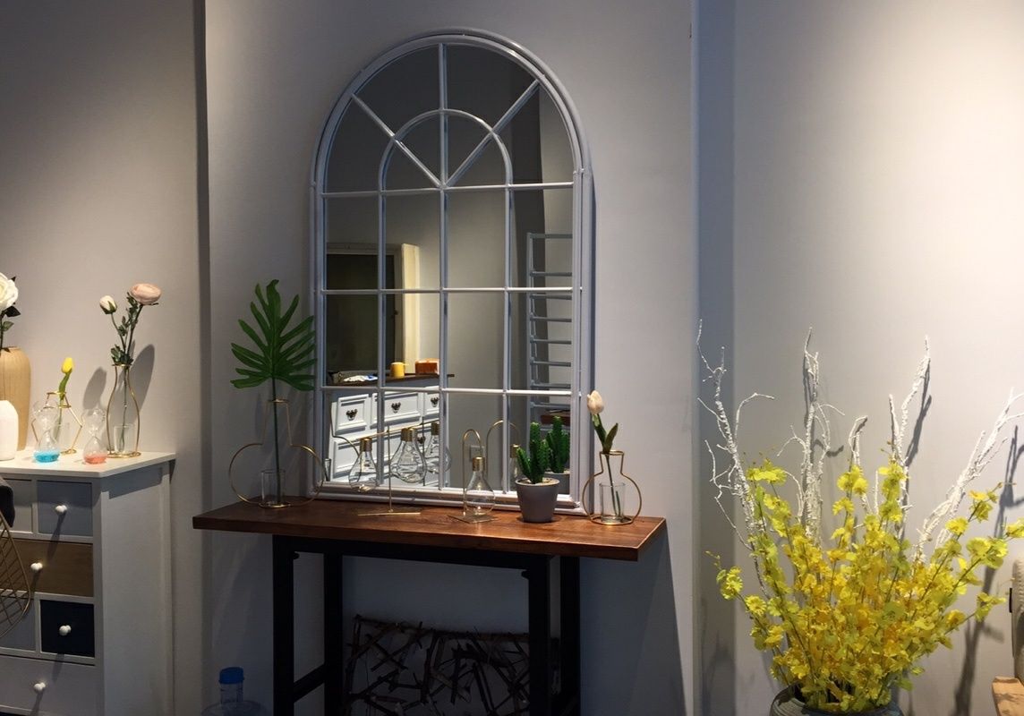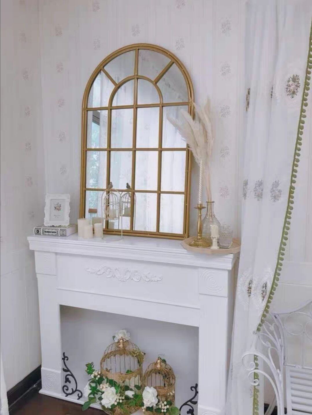 Trang trí tường treo khung gương Châu Âu retro rèn sắt giả cửa sổ gương trang trí tường cửa sổ vòng cung đầu giường treo trang trí treo tường xem khách