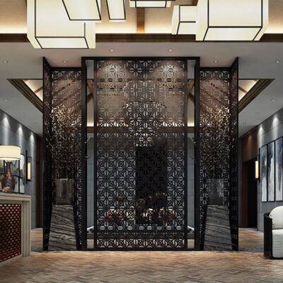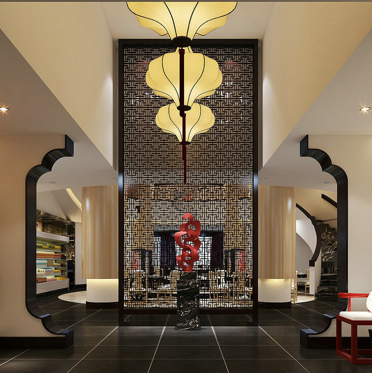 Trang trí vách ngăn bằng thép không gỉ biệt thự kiểu Trung Quốc mới sảnh khách sạn vách ngăn văn phòng hiên