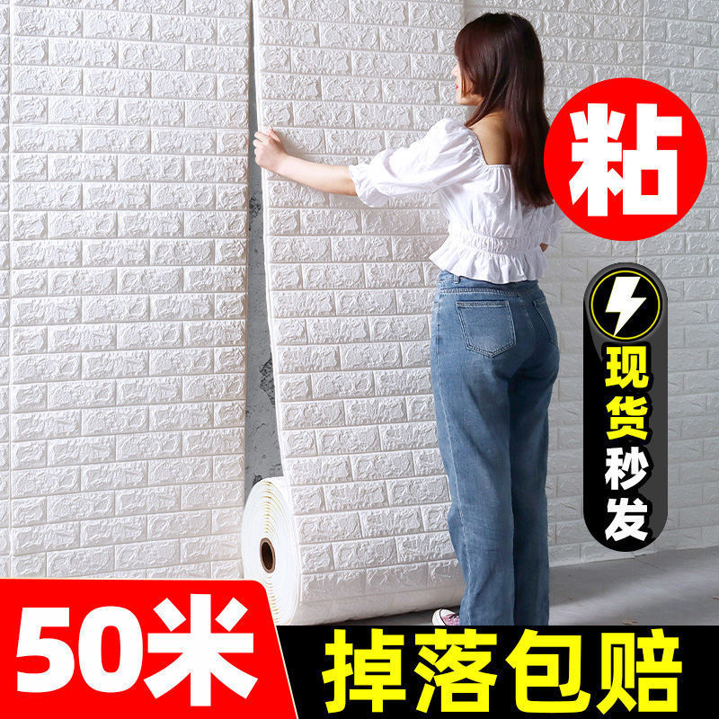 Trang trí wallboard giấy dán tường tự dán giấy dán tường nền tường gạch xốp chống thấm nước và chống ẩm miếng dán tường xi măng thô tóc