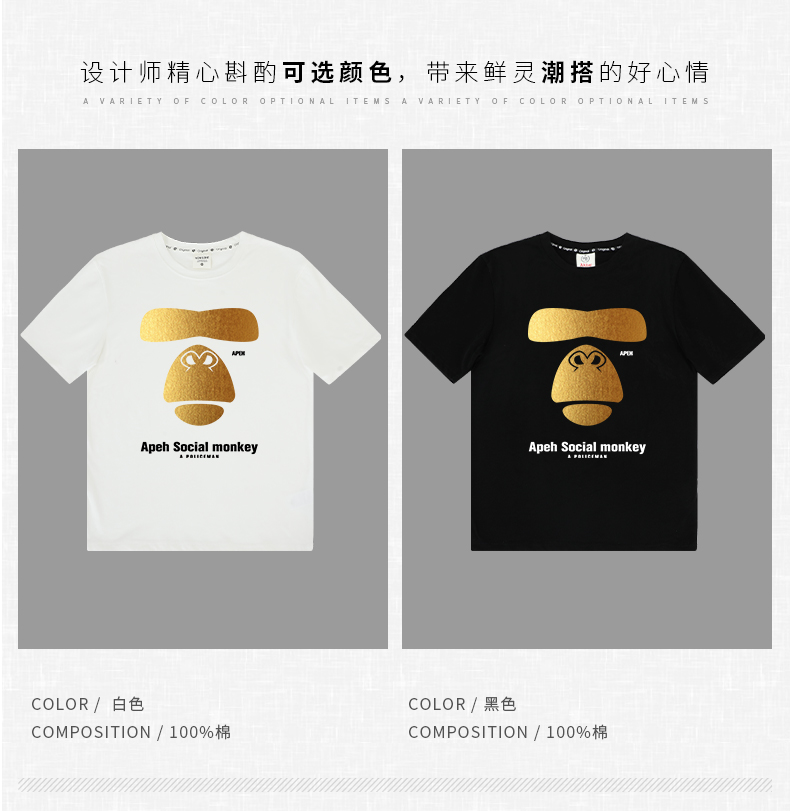 Trang web chính thức của cửa hàng Apeh hàng đầu 2022 new ape man bronzing in áo thun nam ngắn tay cotton triều trong cặp đôi mặc