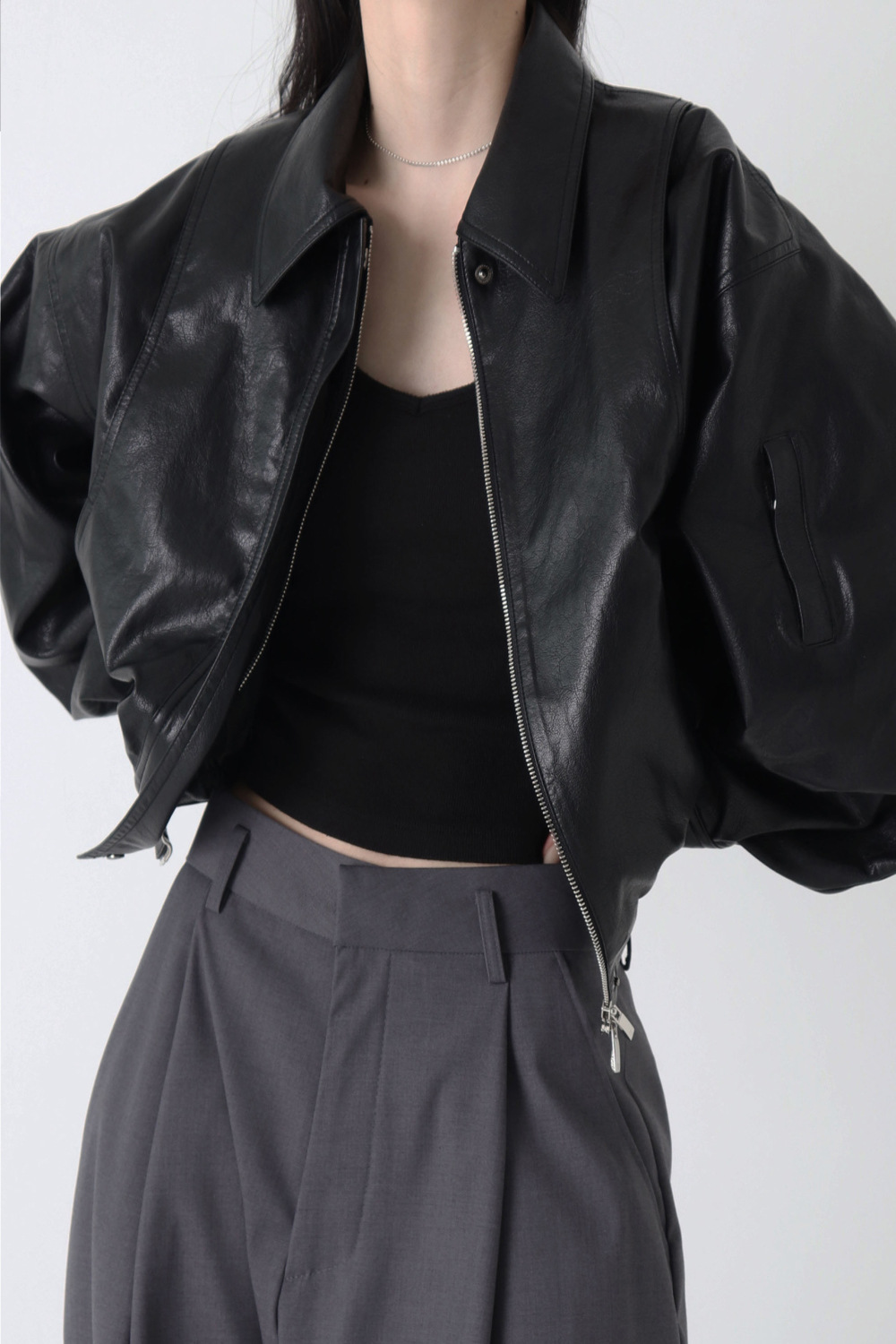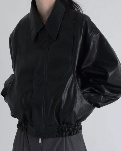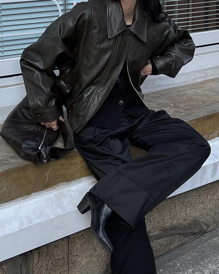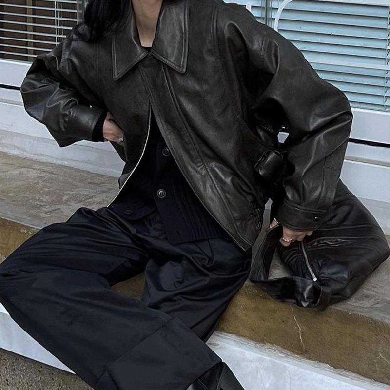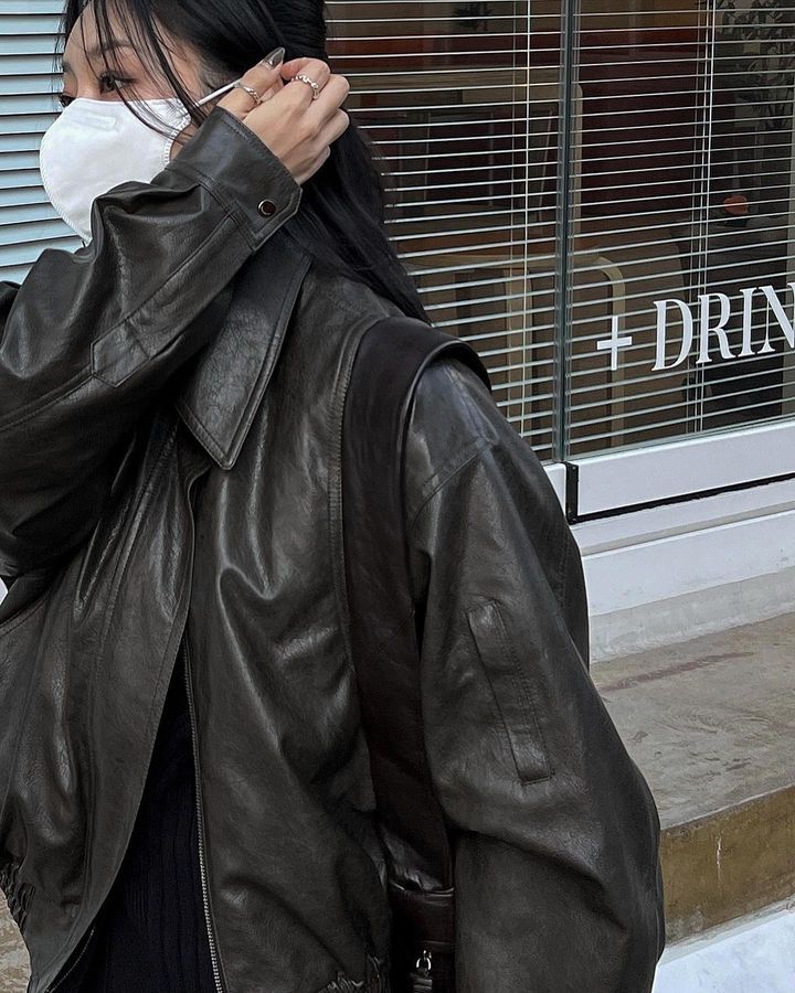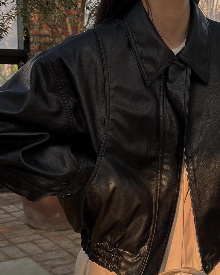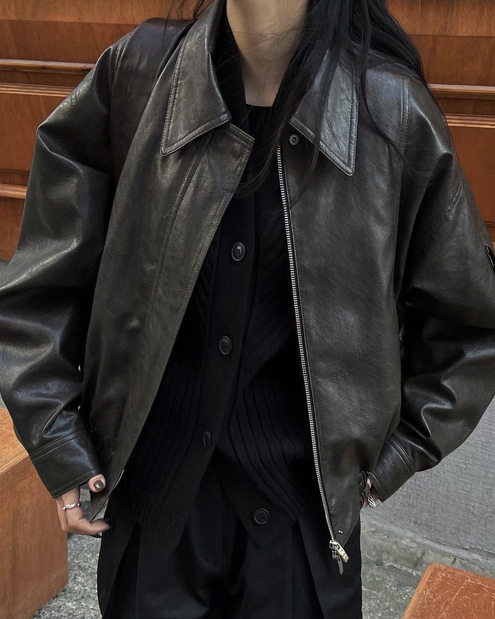 Trang web chính thức của Hàn Quốc ins thiết kế thích hợp cảm giác áo khoác da ngắn áo khoác nữ phi công retro áo khoác nữ mùa thu đông