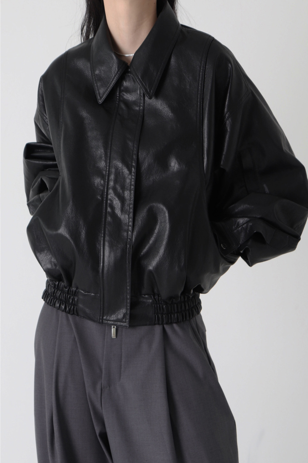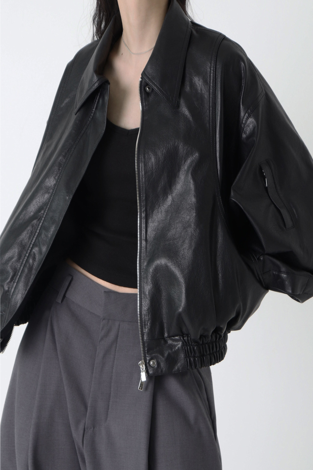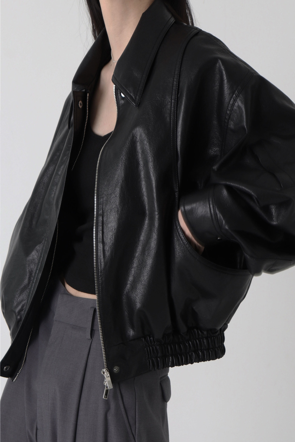Trang web chính thức của Hàn Quốc ins thiết kế thích hợp cảm giác áo khoác da ngắn áo khoác nữ phi công retro áo khoác nữ mùa thu đông