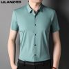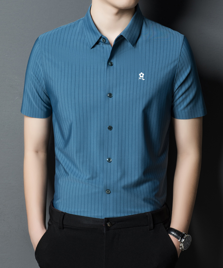 Trang web chính thức Montagut cửa hàng hàng đầu của nam giới áo sơ mi ngắn tay lụa dâu tằm áo sơ mi sọc giản dị của bố trung niên