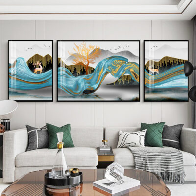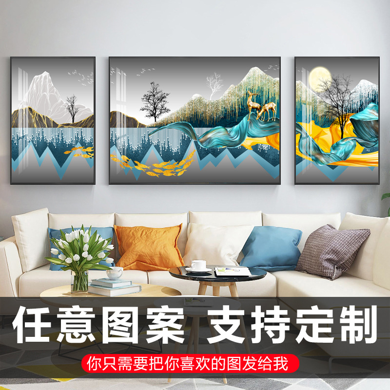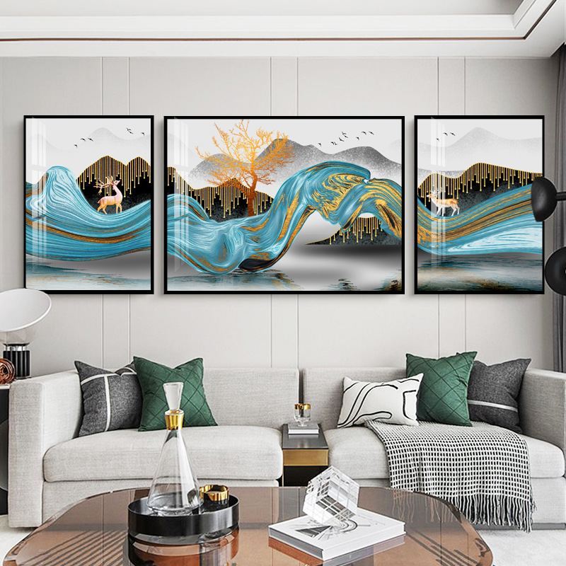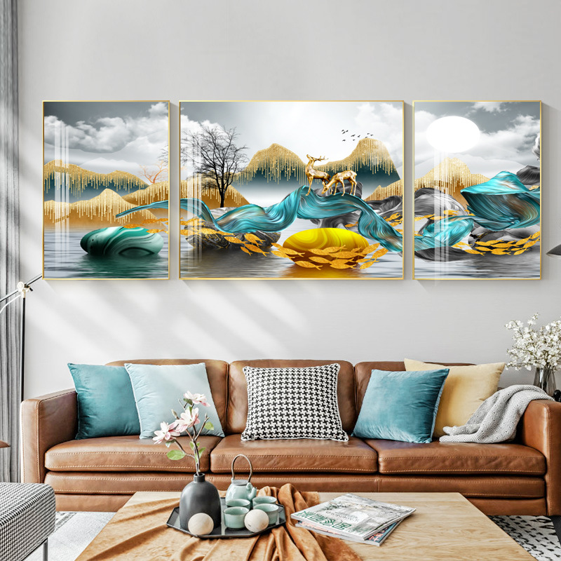 Tranh sứ pha lê bán buôn ánh sáng sang trọng Bắc Âu không khí hiện đại trang trí phòng khách tranh sofa nền tranh treo tường bộ tranh ba bức tranh