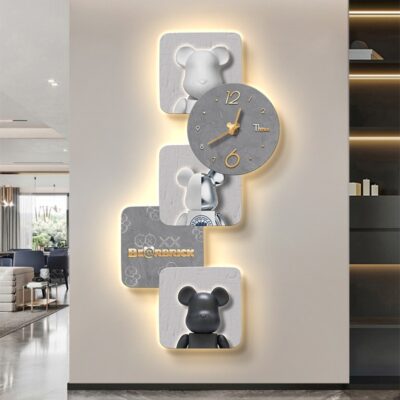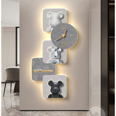 Tranh trang trí lối vào gấu bạo lực Đẹp hiện đại sang trọng xu hướng sáng tạo phòng khách hành lang đồng hồ treo tường đồng hồ treo tường lối đi tranh treo tường