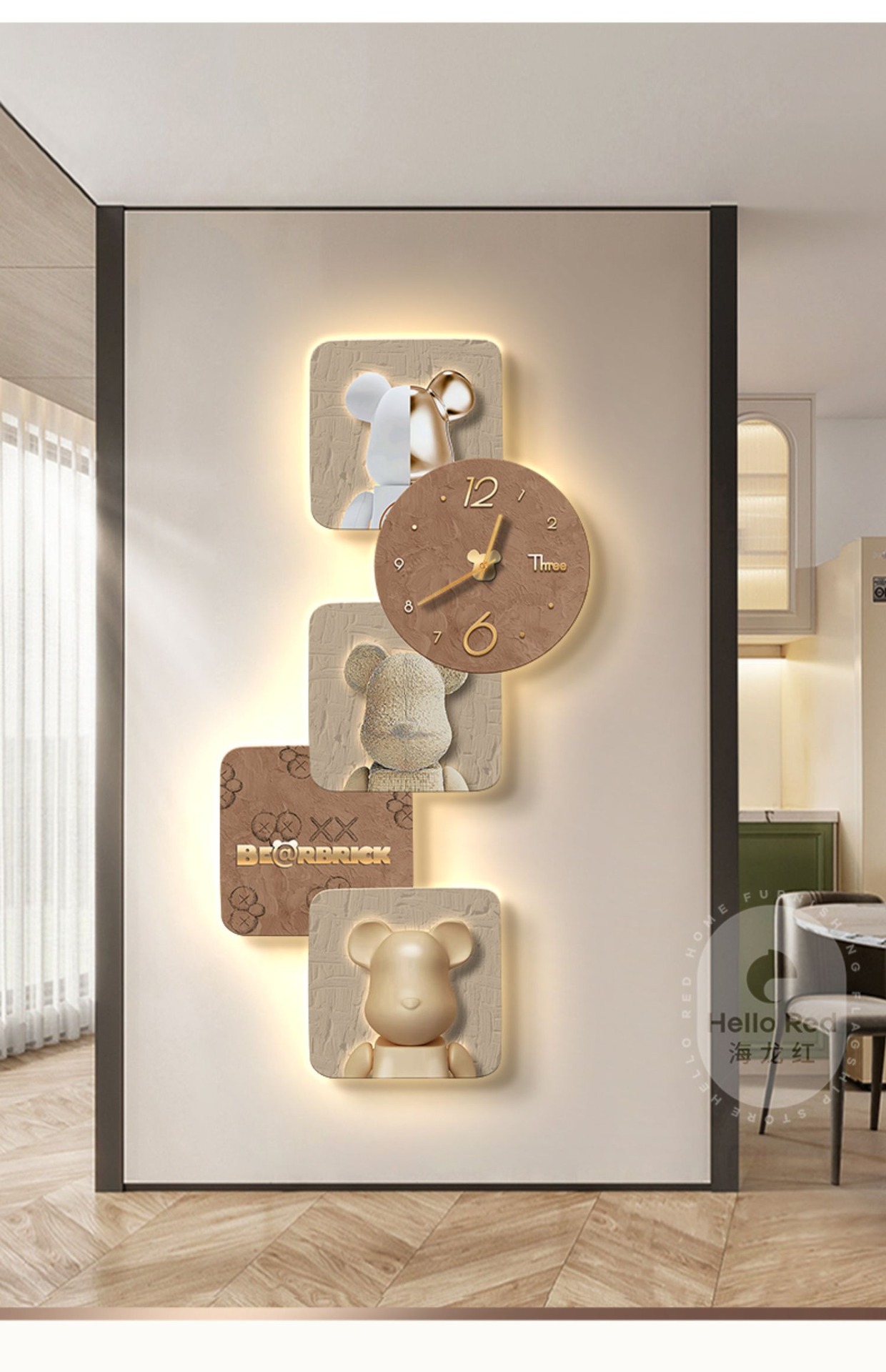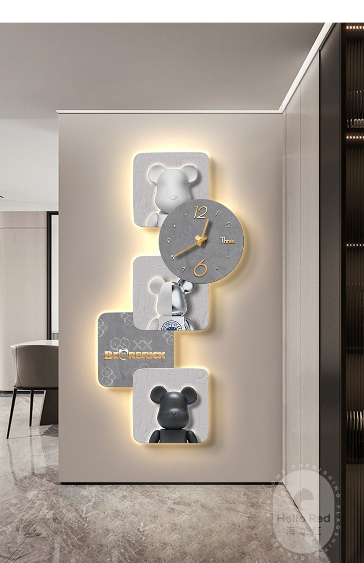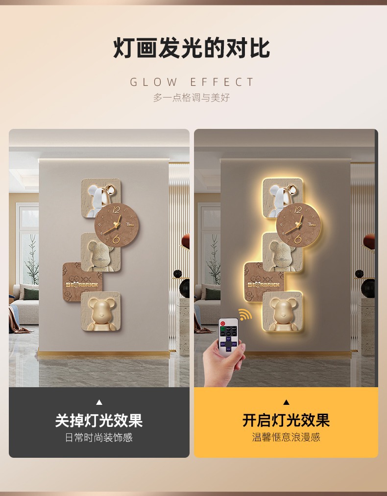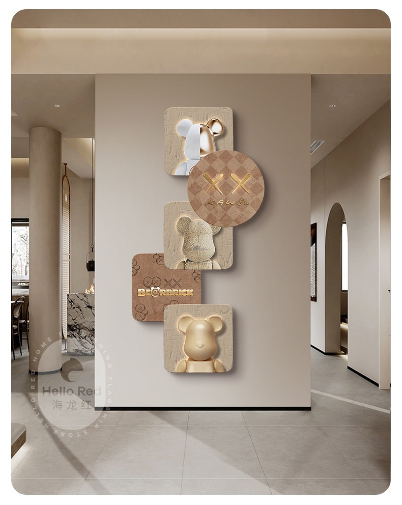 Tranh trang trí lối vào gấu bạo lực Đẹp hiện đại sang trọng xu hướng sáng tạo phòng khách hành lang đồng hồ treo tường đồng hồ treo tường lối đi tranh treo tường