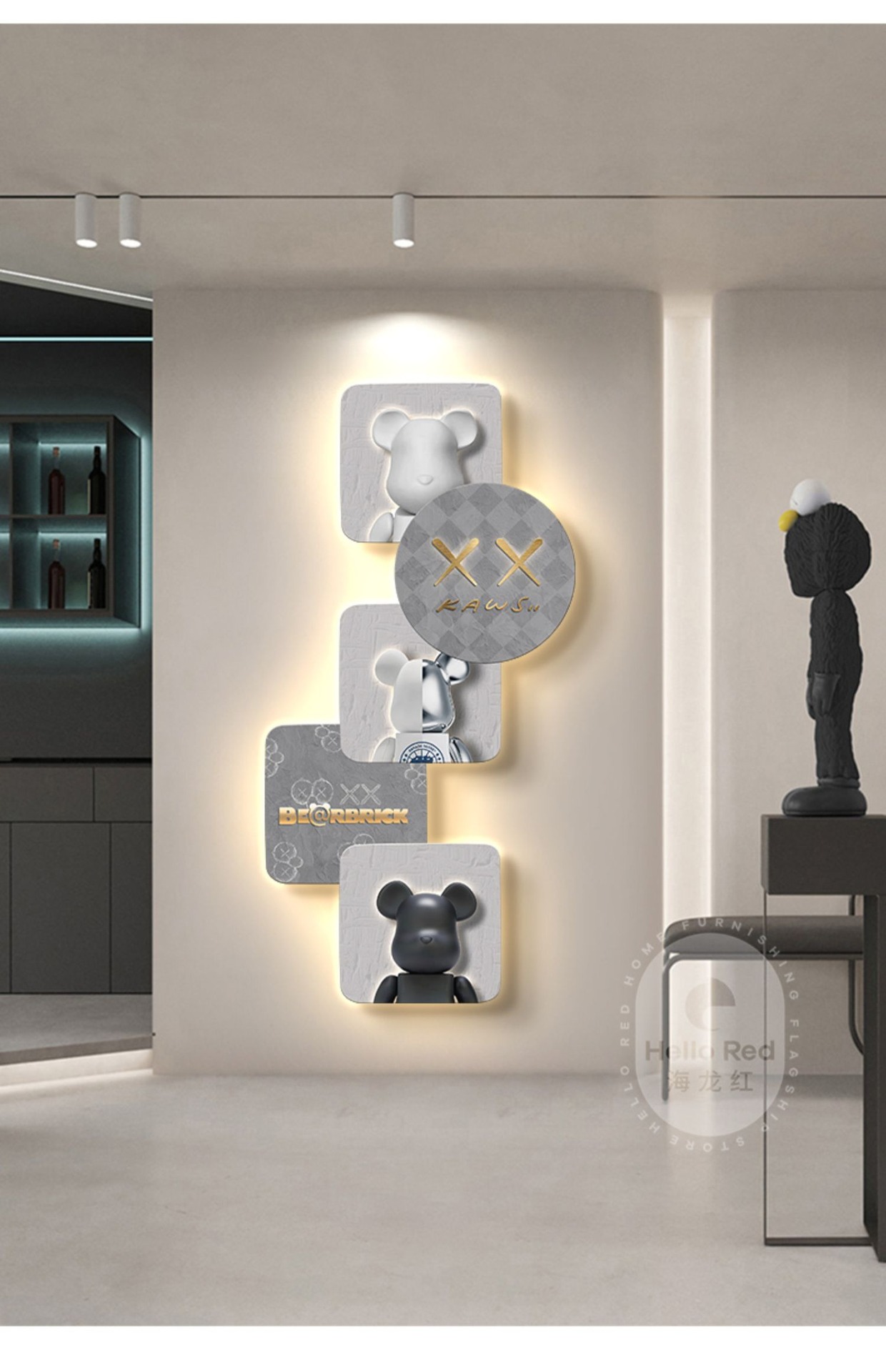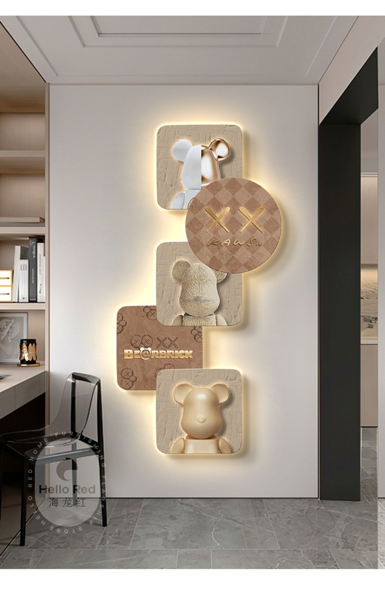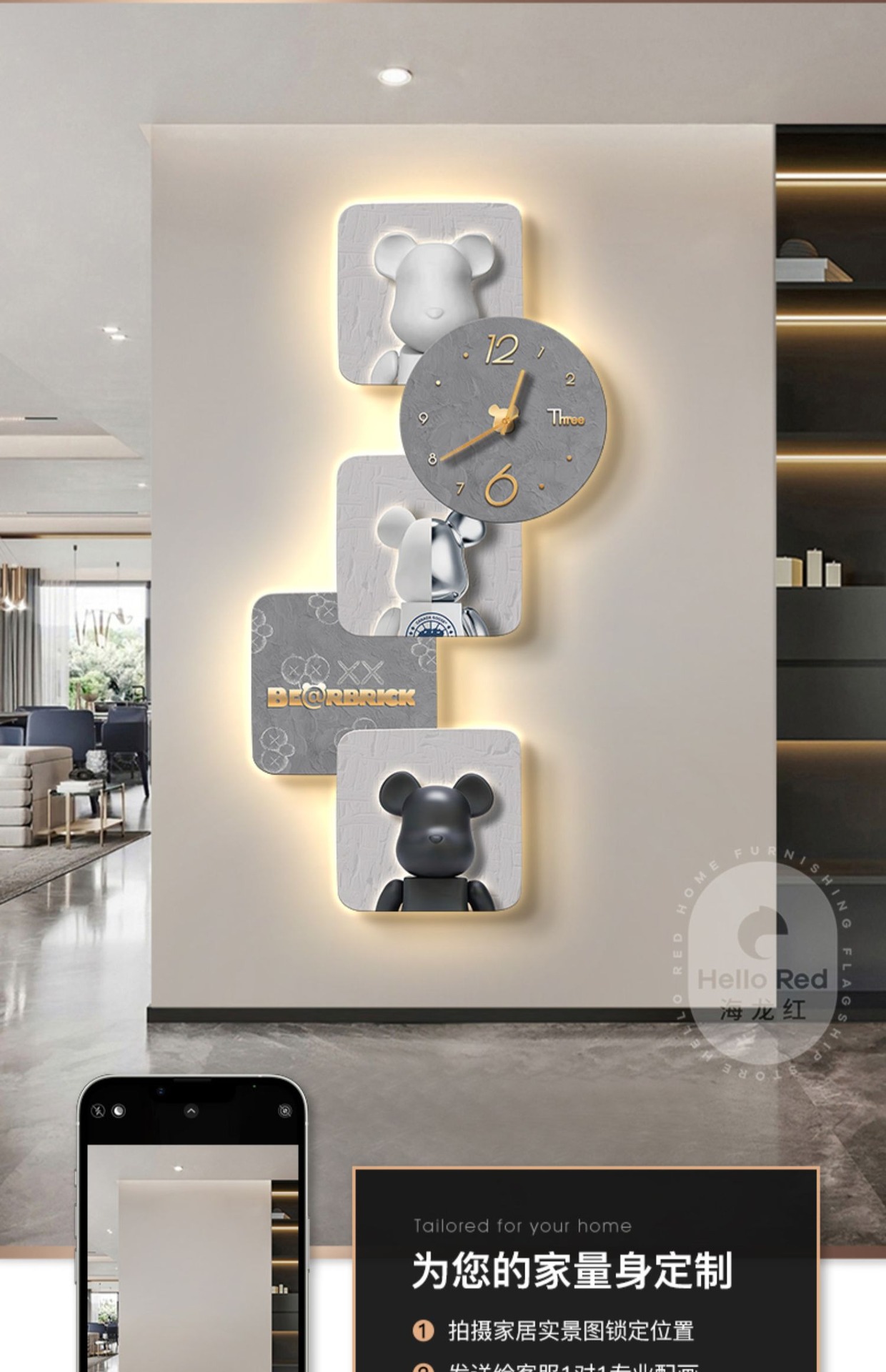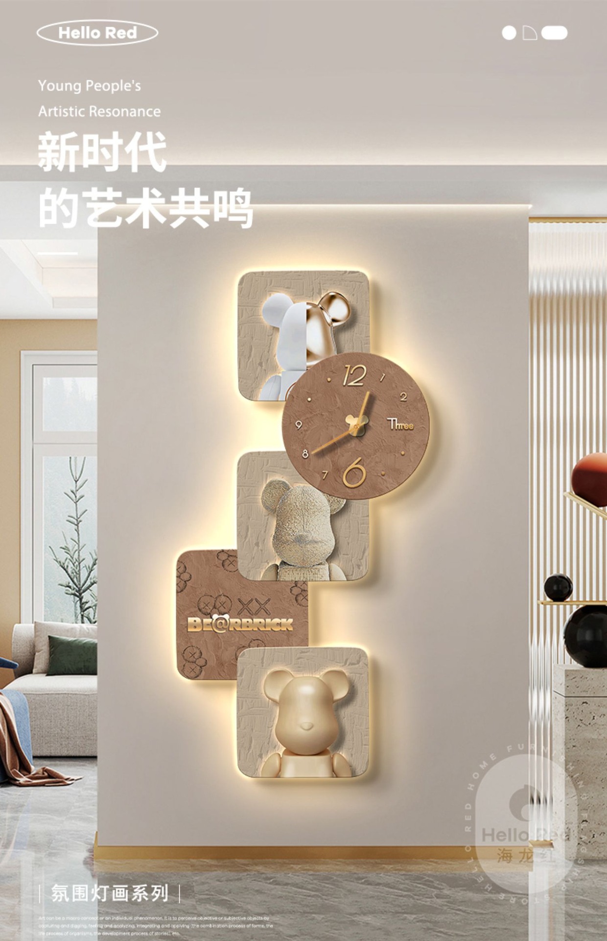 Tranh trang trí lối vào gấu bạo lực Đẹp hiện đại sang trọng xu hướng sáng tạo phòng khách hành lang đồng hồ treo tường đồng hồ treo tường lối đi tranh treo tường
