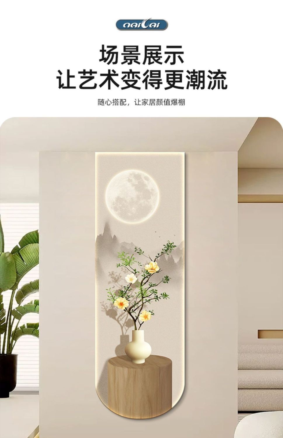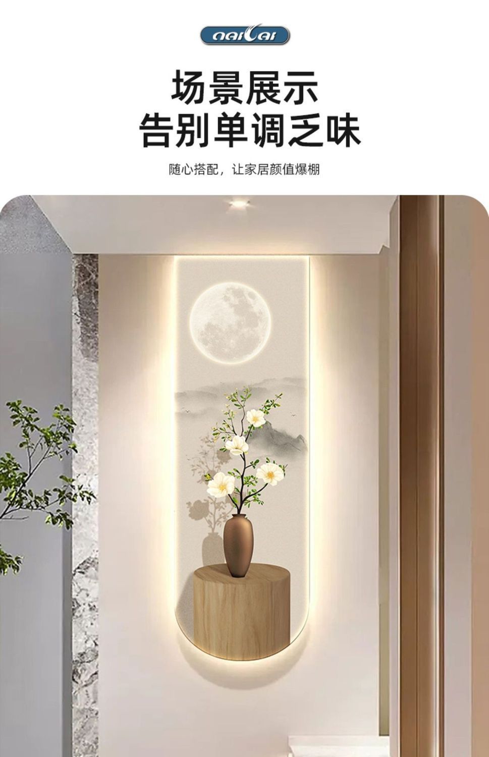 Tranh trang trí lối vào phiên bản dọc hành lang lối đi đèn cảm ứng tranh phim và tivi treo tường tranh lối vào lối vào bức tranh tường hoa ấm chào đón mặt trăng