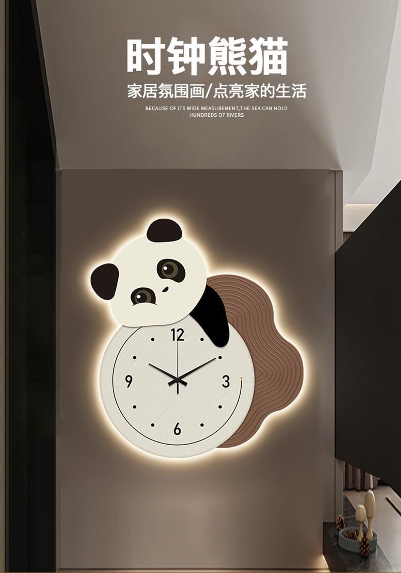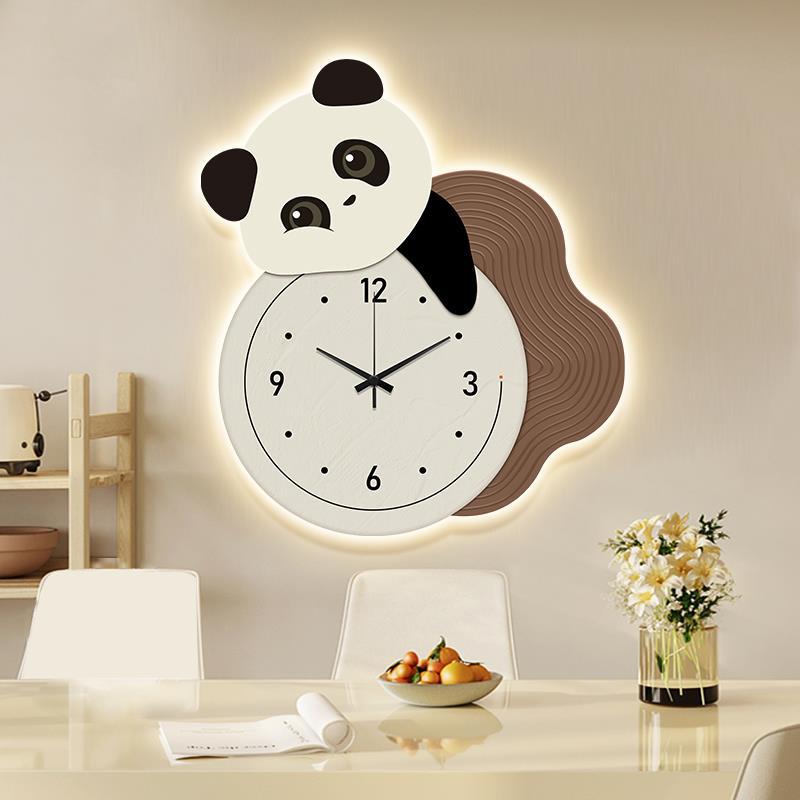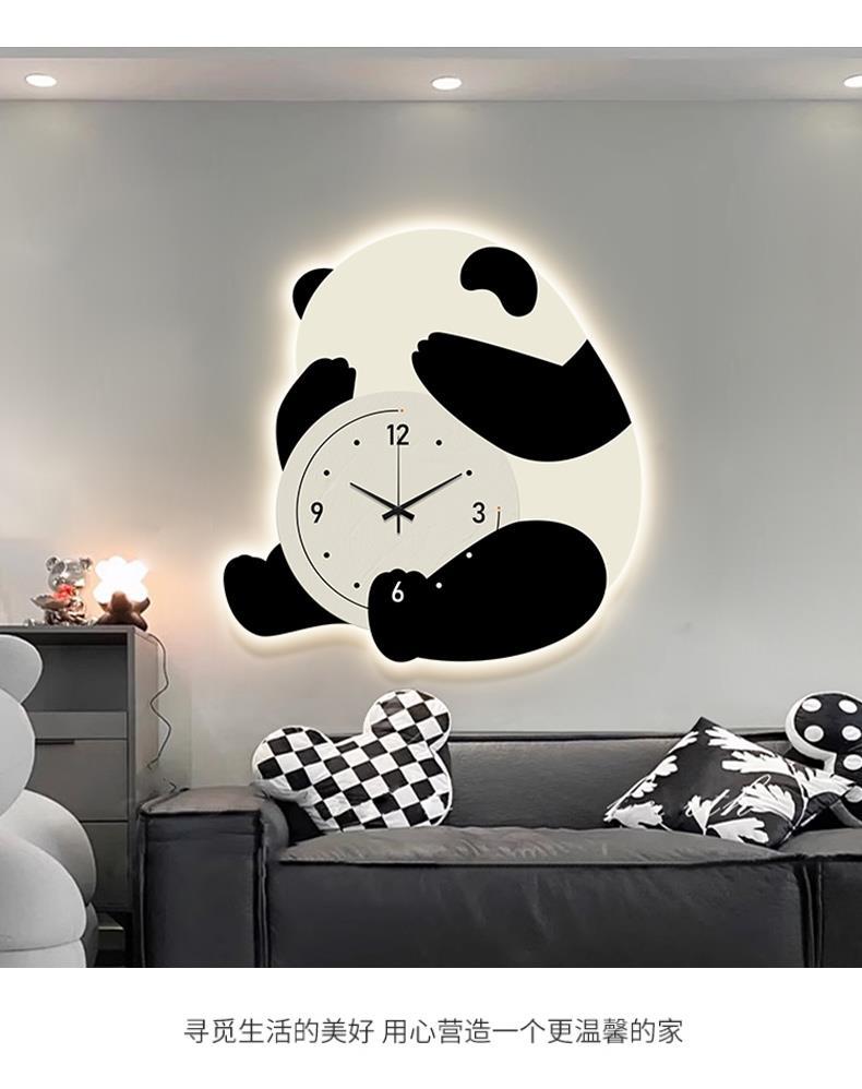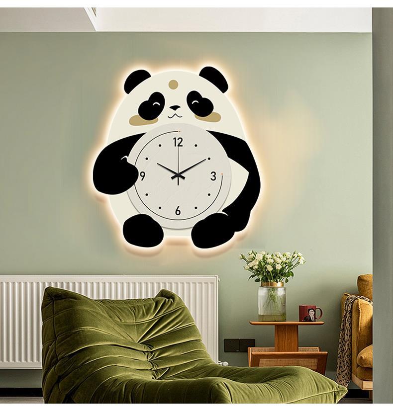 Tranh trang trí nhà hàng gấu trúc tối giản hiện đại với đồng hồ phòng ăn bức tranh tường phòng khách phòng trẻ em đèn LED tranh treo tranh