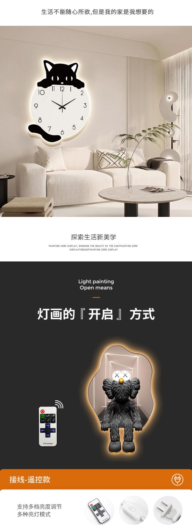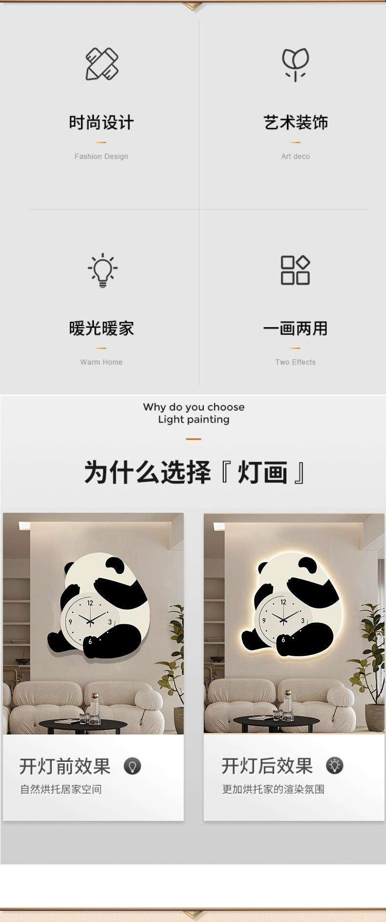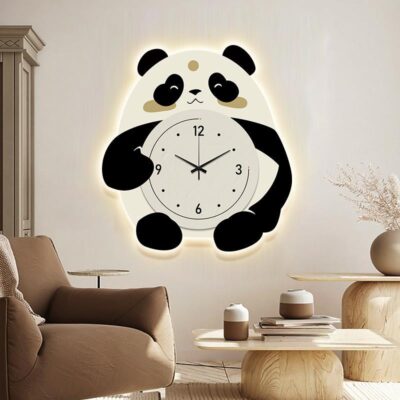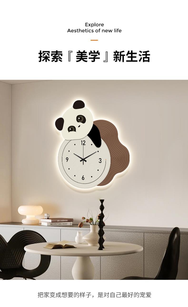 Tranh trang trí nhà hàng gấu trúc tối giản hiện đại với đồng hồ phòng ăn bức tranh tường phòng khách phòng trẻ em đèn LED tranh treo tranh