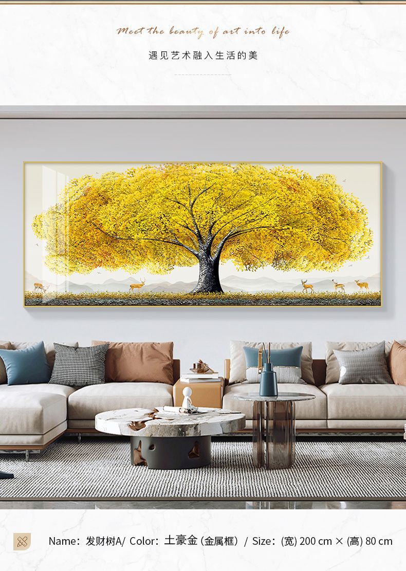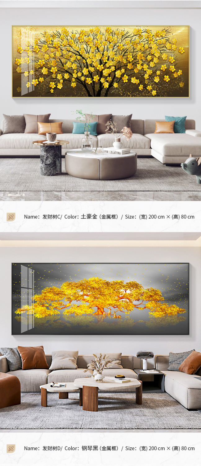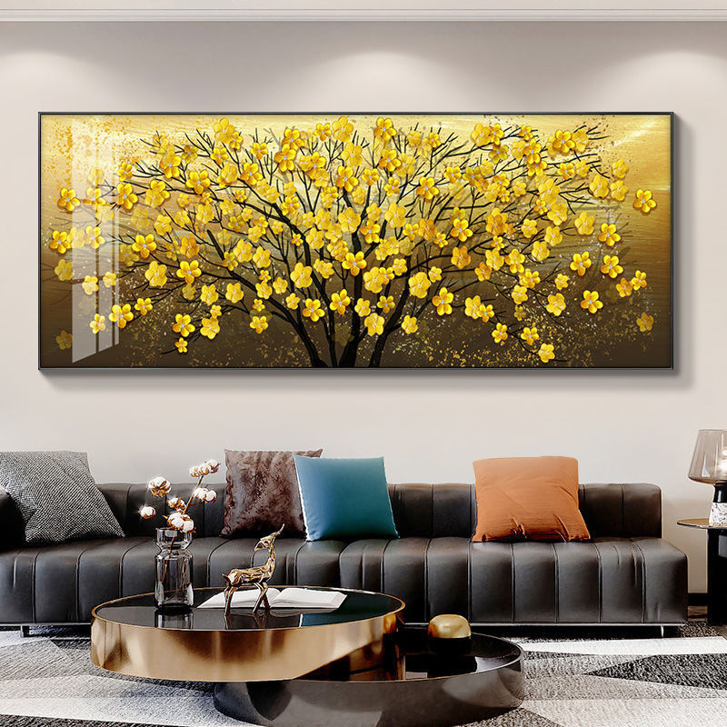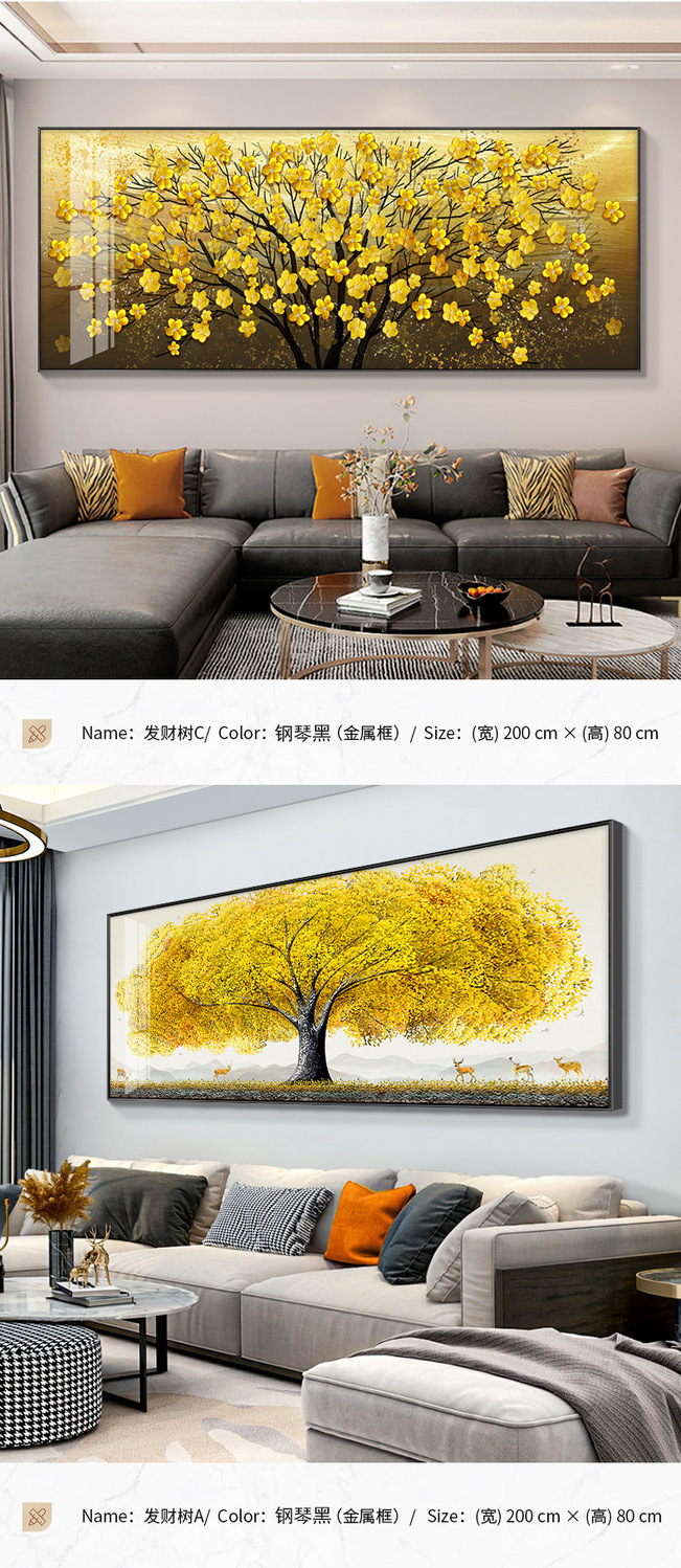 Tranh trang trí phòng khách cây vàng 2023 mới lớn pha lê sứ kim cương treo tranh tường sofa phong cách Trung Quốc mới