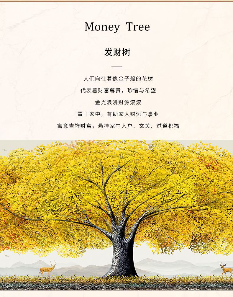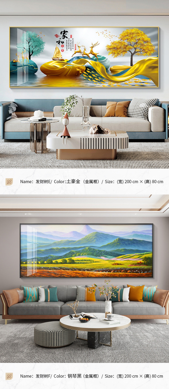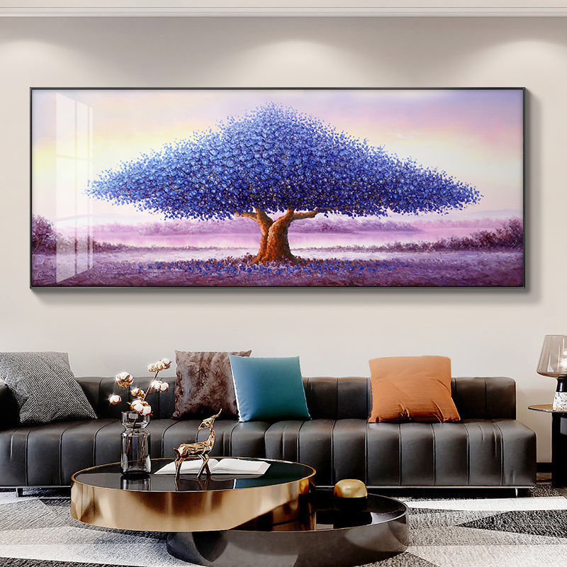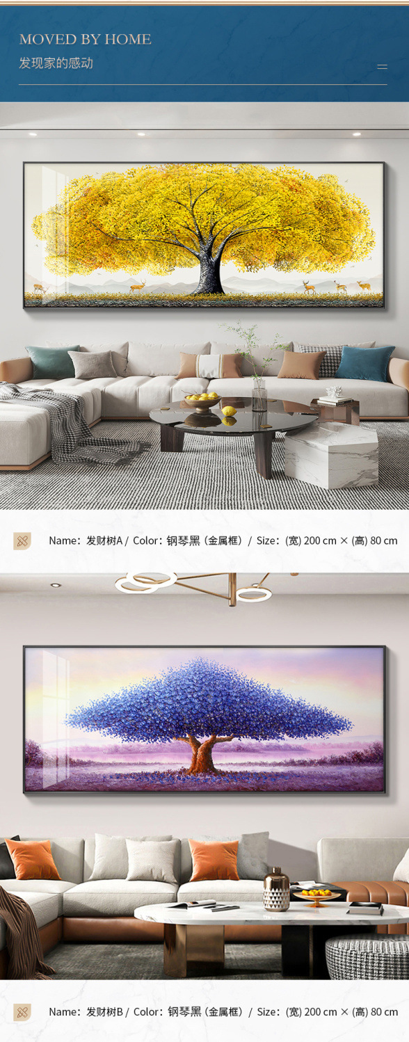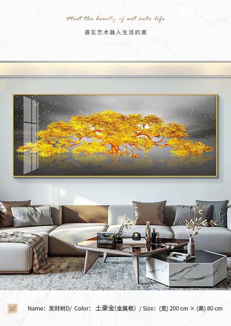 Tranh trang trí phòng khách cây vàng 2023 mới lớn pha lê sứ kim cương treo tranh tường sofa phong cách Trung Quốc mới