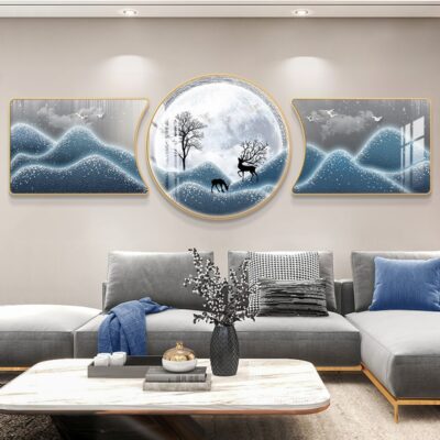 Tranh trang trí phòng khách Fulu đôi đầy đủ bức tranh tường hiện đại ánh sáng sang trọng bầu không khí bộ ba ý nghĩa tốt sofa nền tường treo tranh