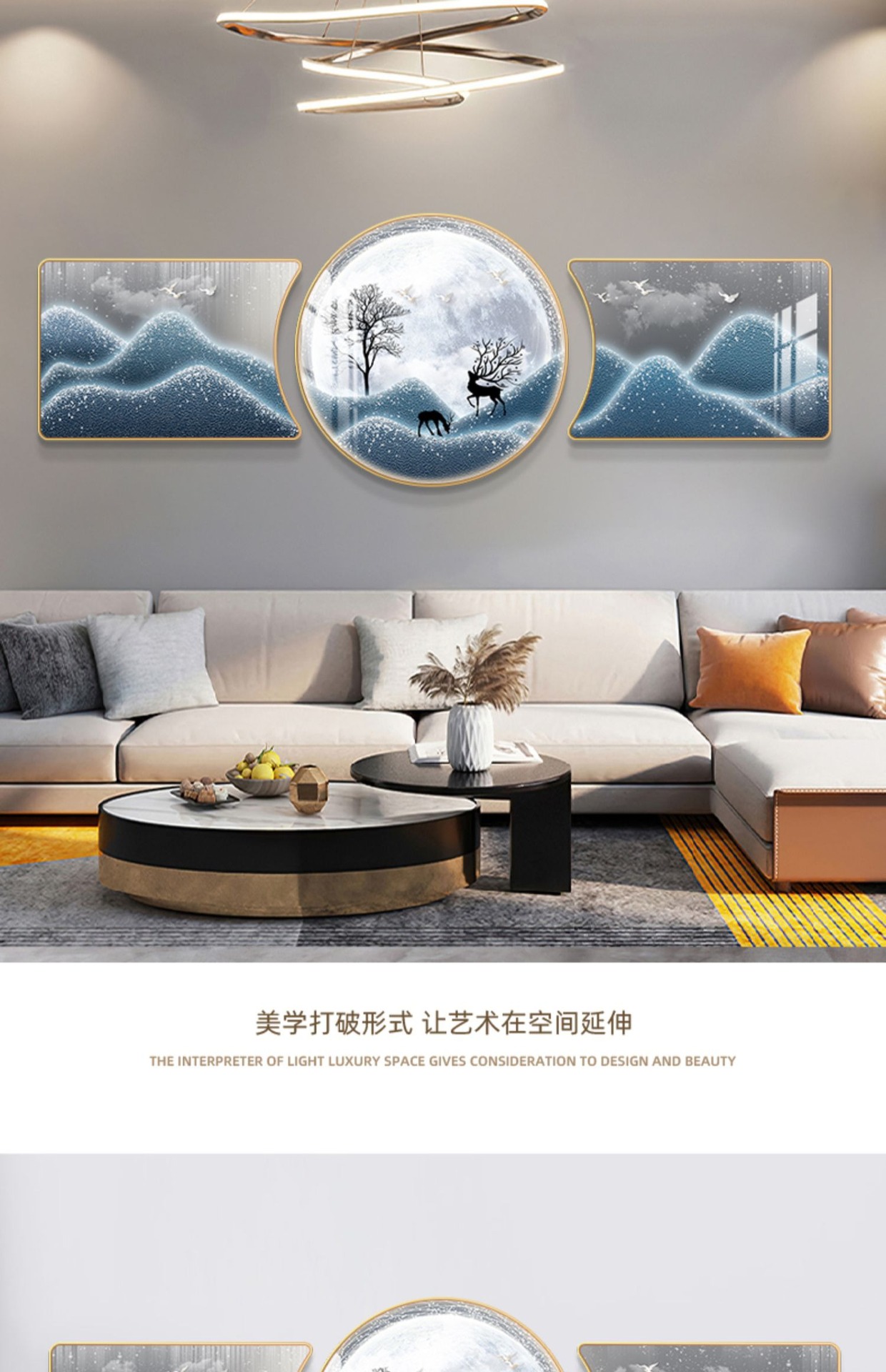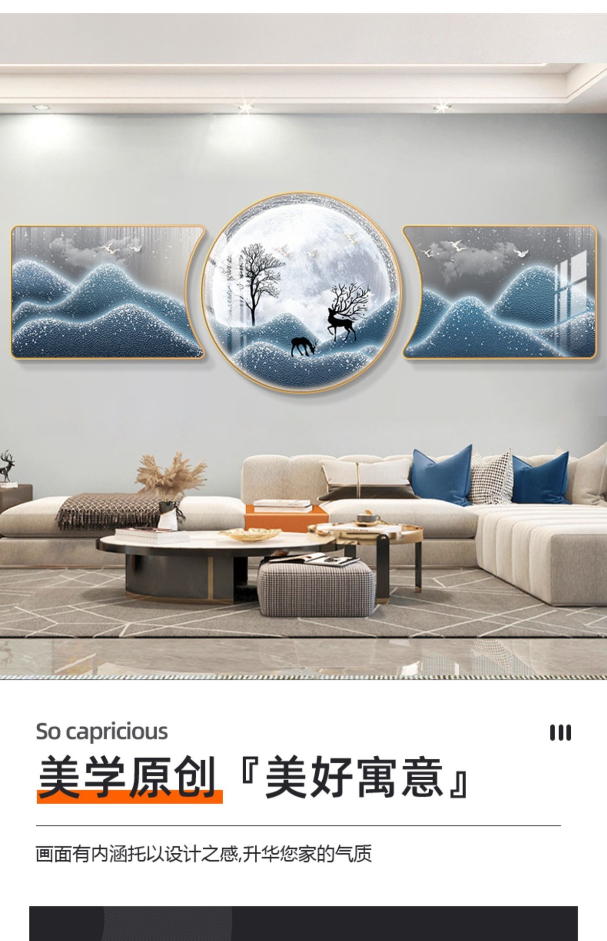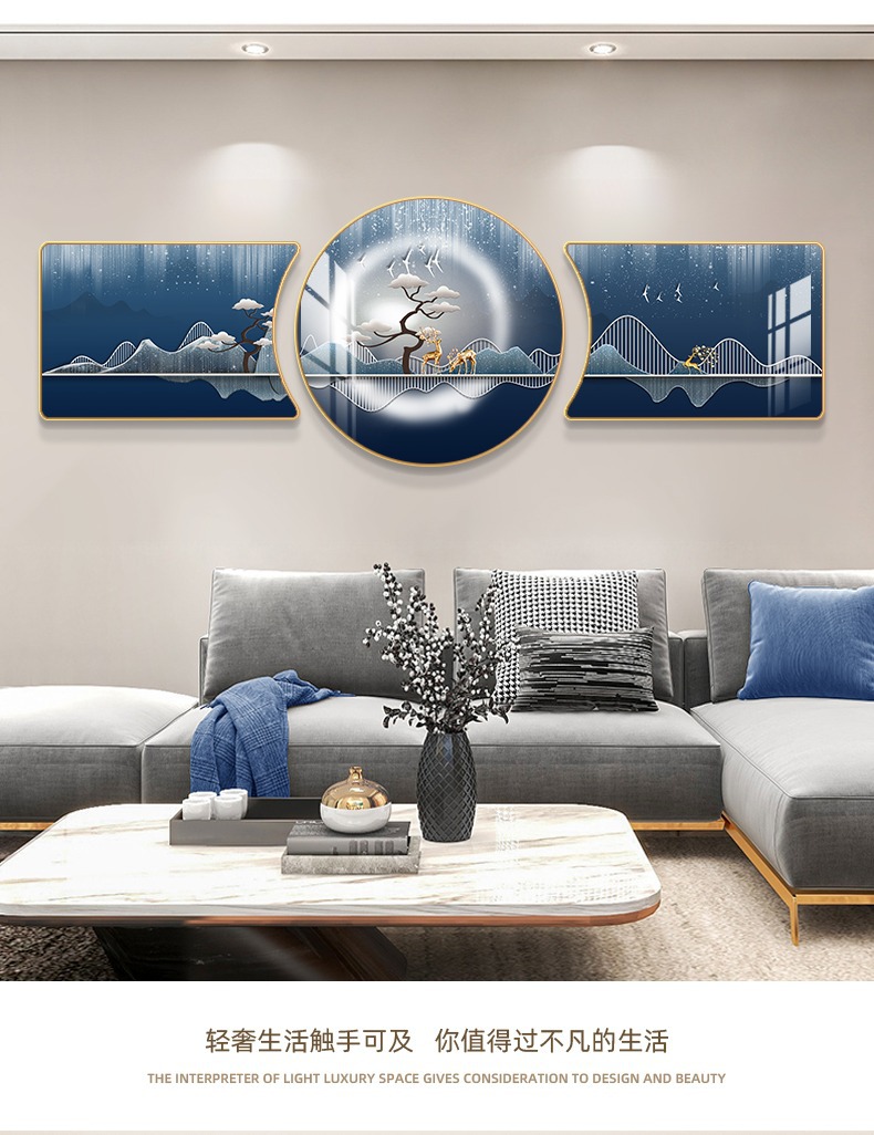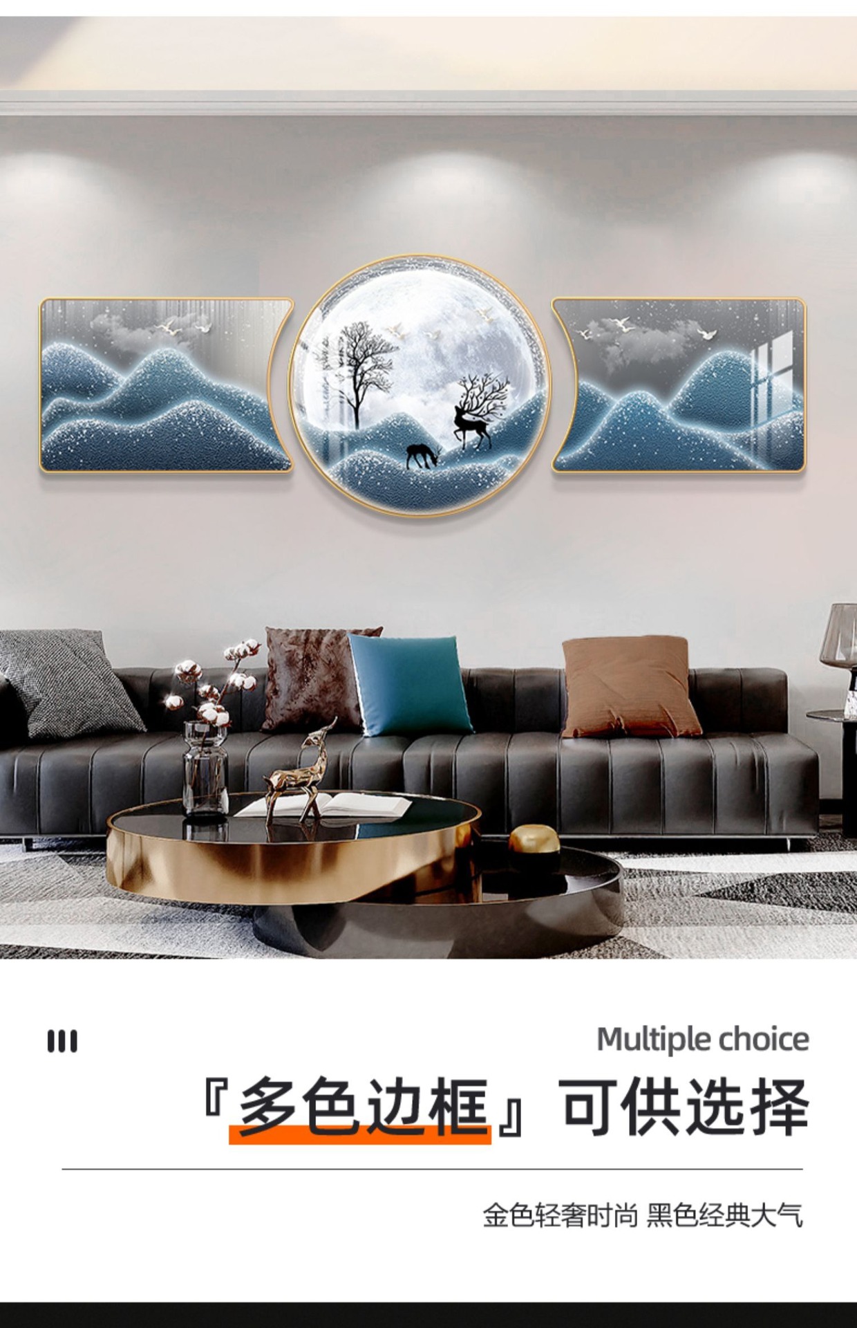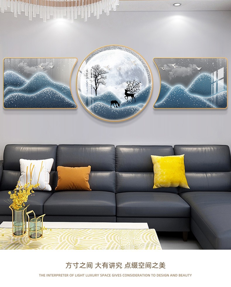 Tranh trang trí phòng khách Fulu đôi đầy đủ bức tranh tường hiện đại ánh sáng sang trọng bầu không khí bộ ba ý nghĩa tốt sofa nền tường treo tranh