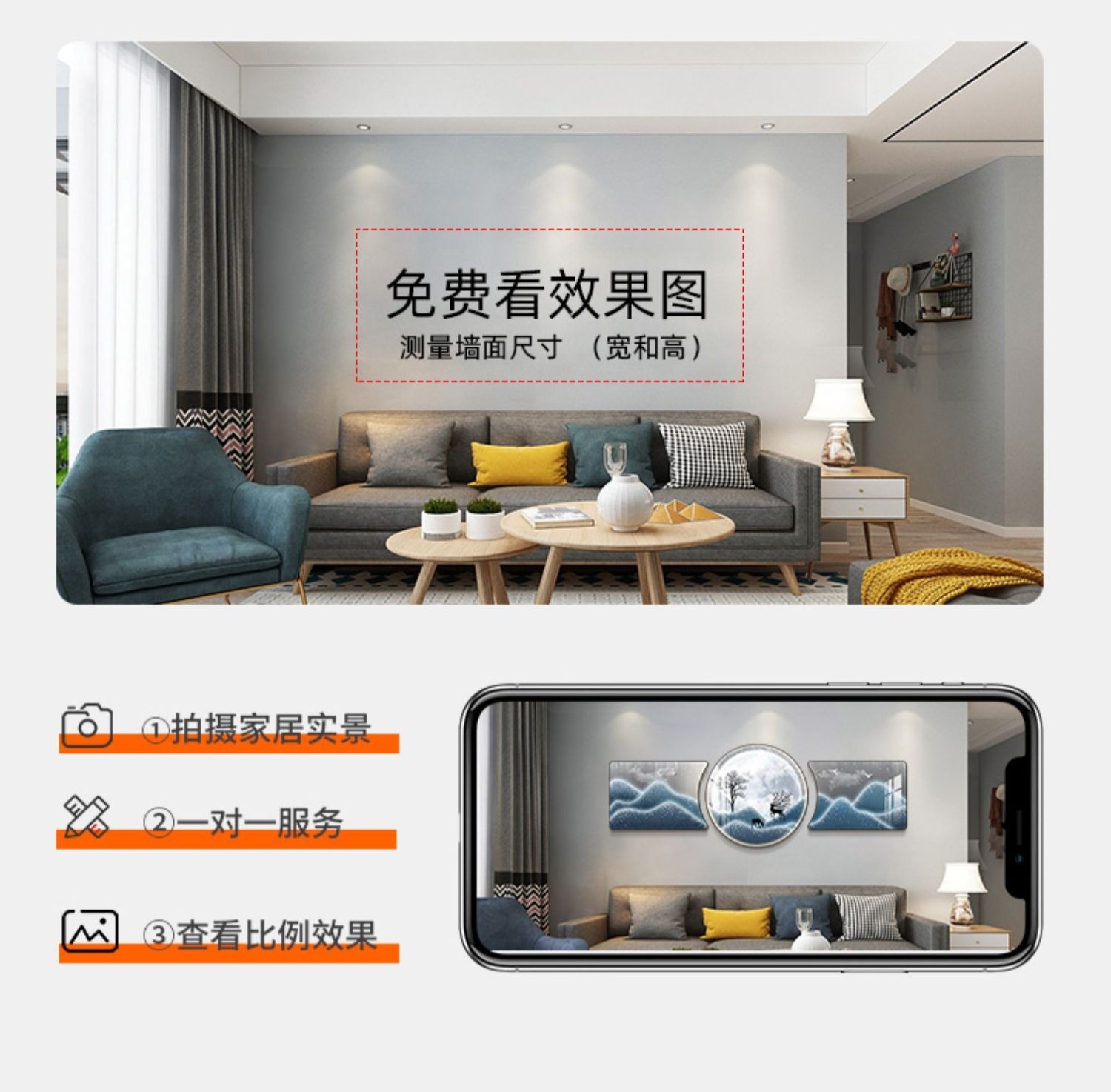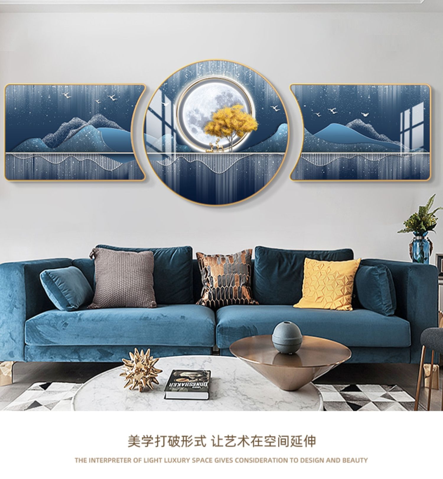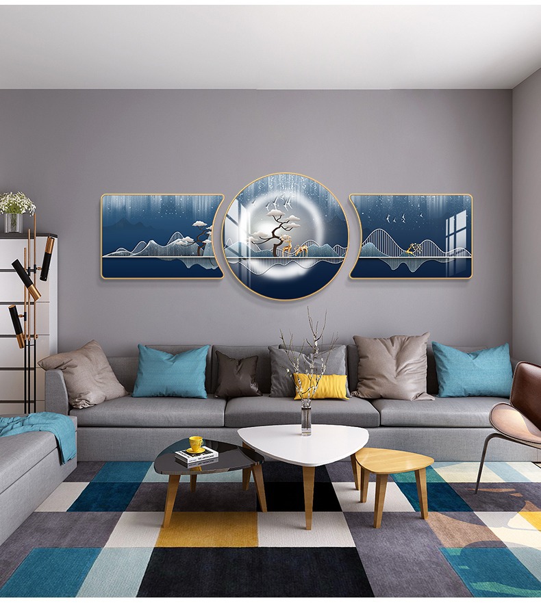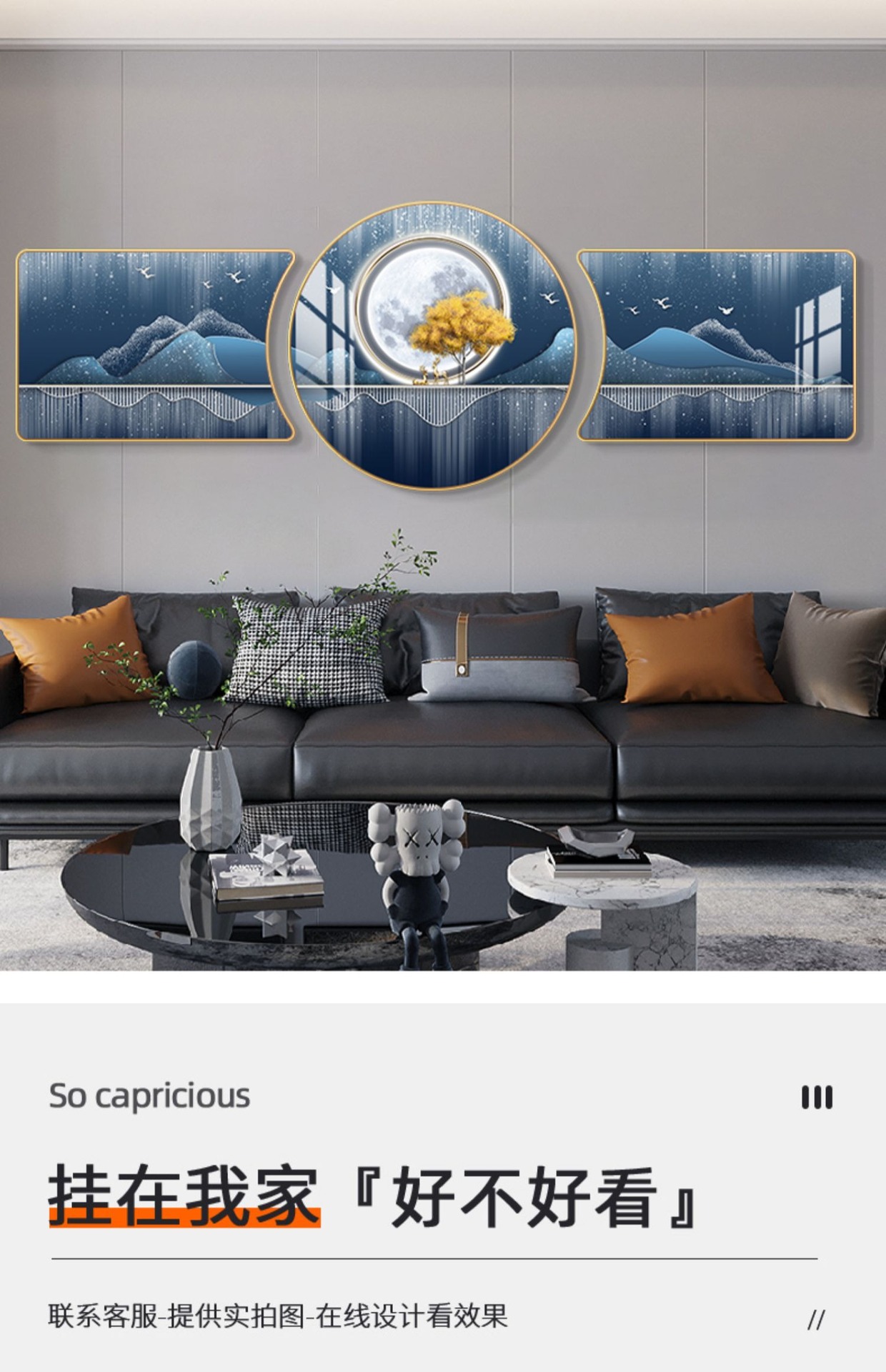 Tranh trang trí phòng khách Fulu đôi đầy đủ bức tranh tường hiện đại ánh sáng sang trọng bầu không khí bộ ba ý nghĩa tốt sofa nền tường treo tranh
