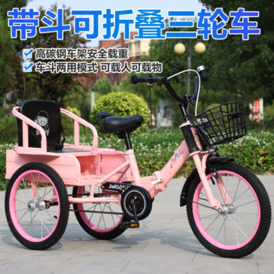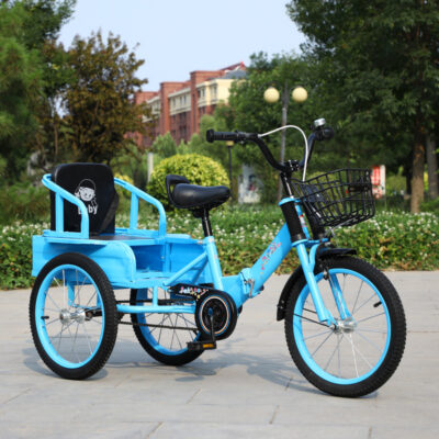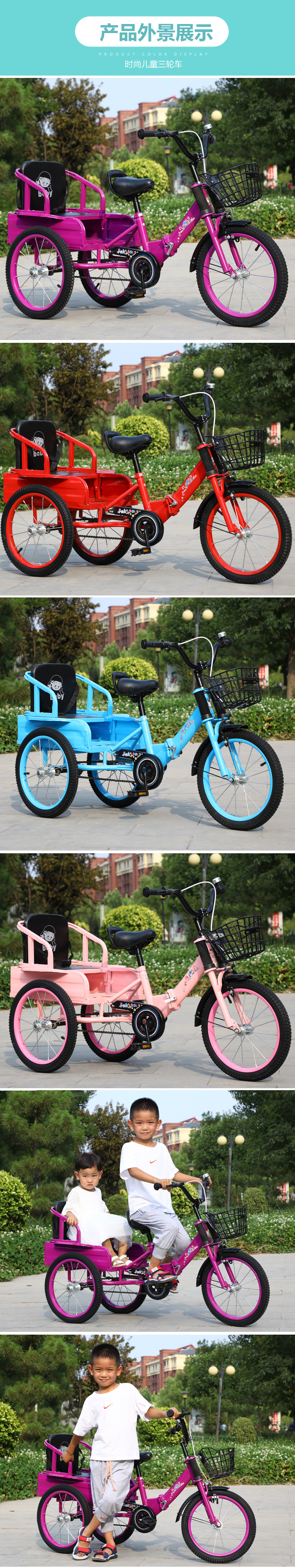 Trẻ Em Ba Bánh Xe Đạp Sắt Xô 2-12 Tuổi Đôi Ghế Xe Đạp Bơm Hơi Lốp Xe Đẩy Cho Bé