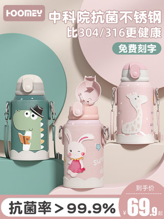 Trẻ em giữ nhiệt cốc với ống hút cậu bé học sinh tiểu học 316 nữ em bé chai nước túi đựng nước đặc biệt cho trường học