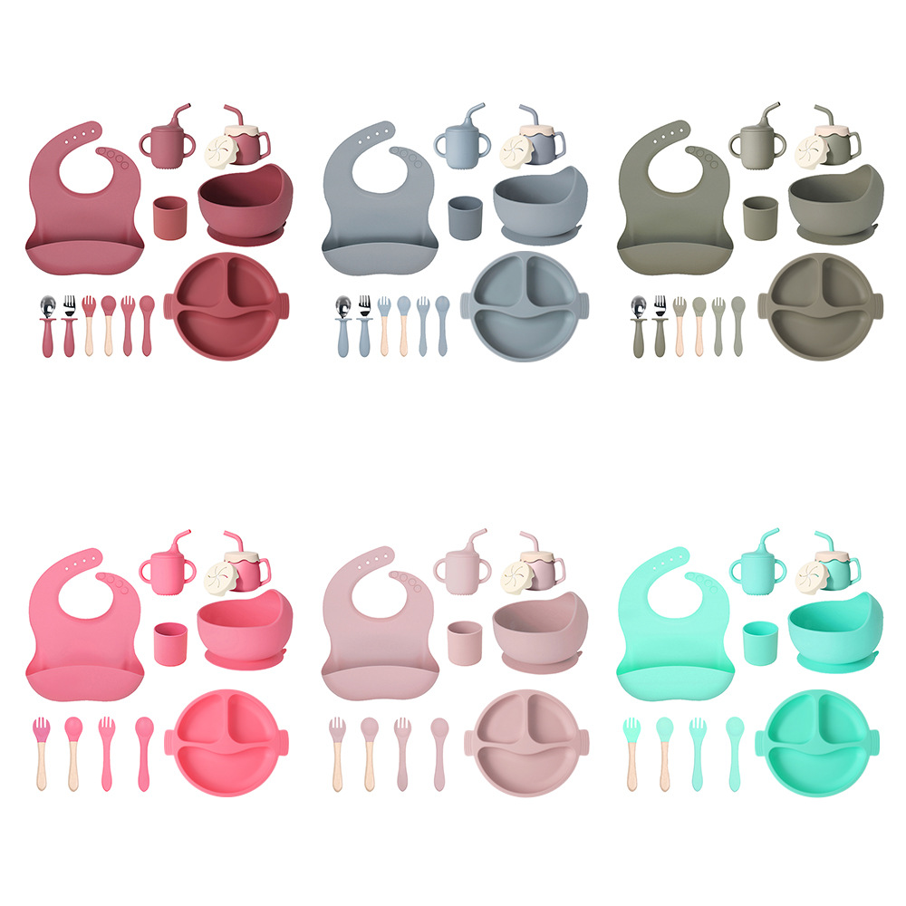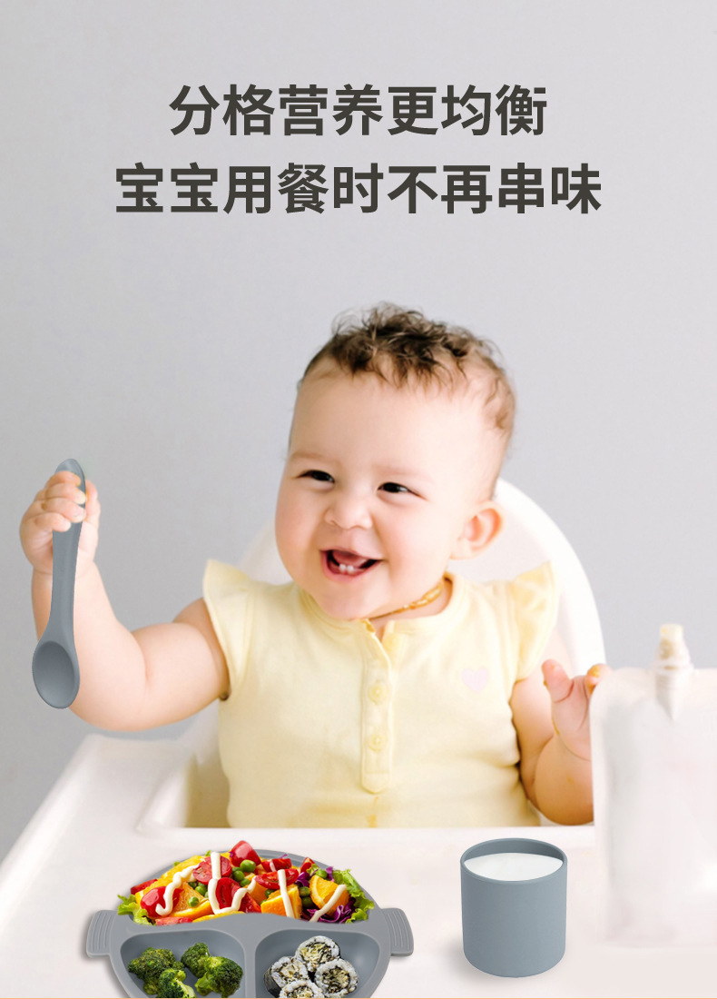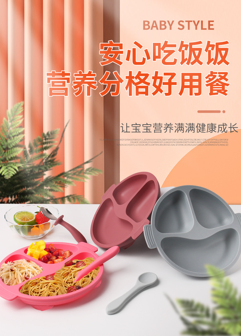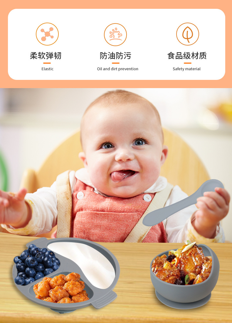 Trẻ Em Silicone Bộ Đồ Ăn Bé Smile Silicone Chia Hút Tấm Chống Rơi Cho Bé Bộ Đồ Ăn