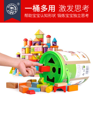 Trẻ em xây dựng khối gỗ câu đố lắp ráp đồ chơi bé bé giáo dục sớm thùng gỗ 1-2 năm 3 bé trai 6 bé gái