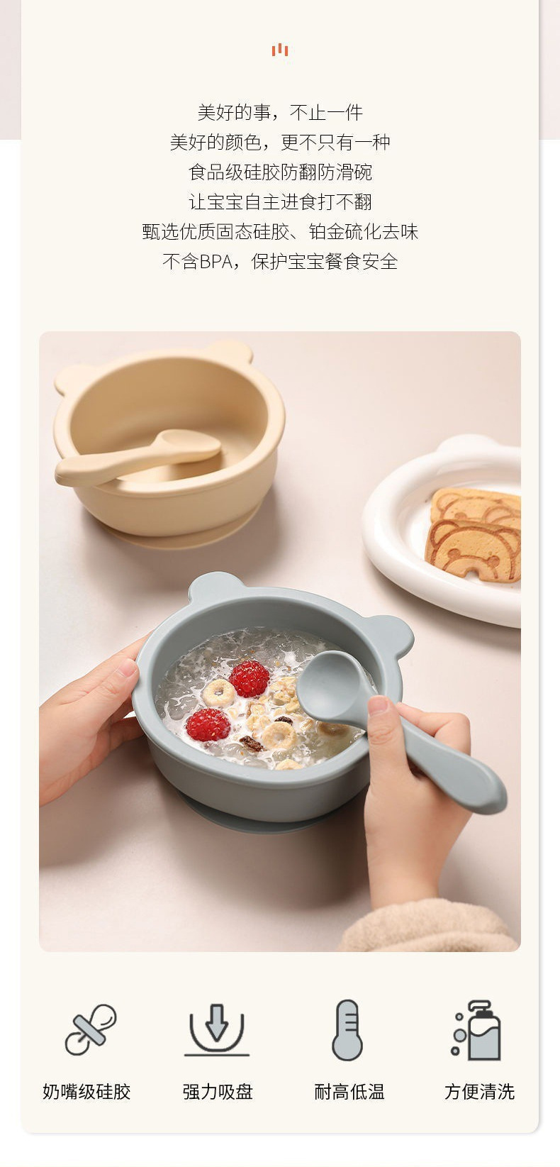 Trẻ Sơ Sinh Hoạt Hình Bộ Bát Nĩa Muỗng Silicone Cho Bé Dễ Thương Thực Phẩm Bổ Sung Gấu Bộ Đồ Ăn Bộ Đồ Ăn Trẻ Em 2 Bộ