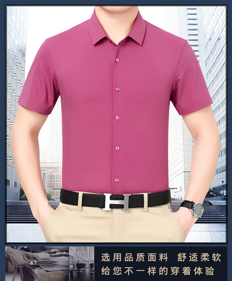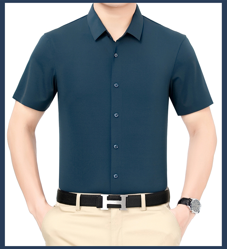 Trẻ trung dâu tằm áo sơ mi nam ngắn tay trung niên sắt không nam cao cấp công sở bình thường áo sơ mi lụa mỏng mùa hè