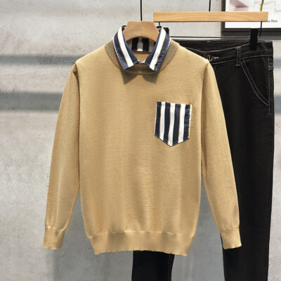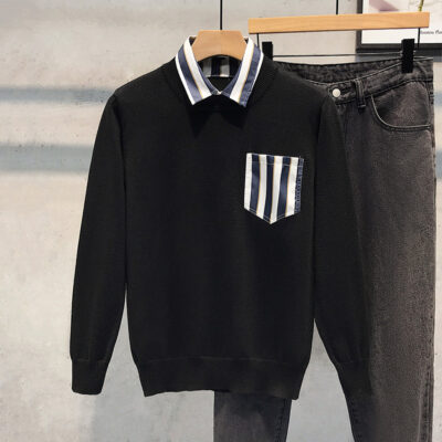 Triều Thương Hiệu Mùa Đông Mới Miếng Dán Cổ Áo Sơ Mi Nối Giả Hai Mảnh Nam Retro Áo Len Thu Đông Dệt Kim