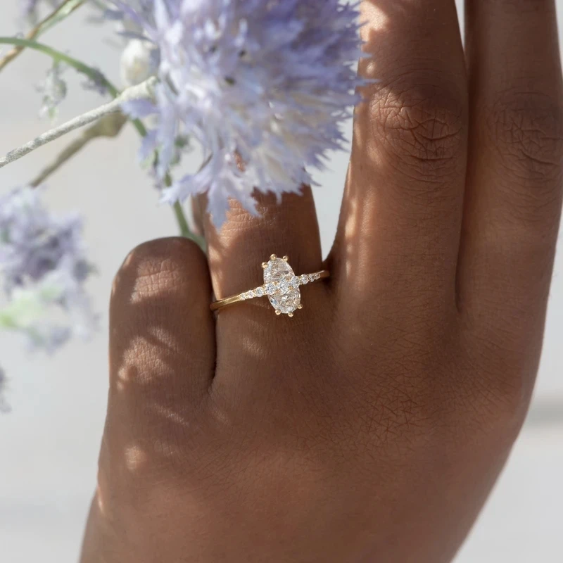 925 Sterling Silver Big Oval Crystal Rings For Women Rainbow Zircon Pave Slim Thin Rings Wedding Engagement Party Jewelry