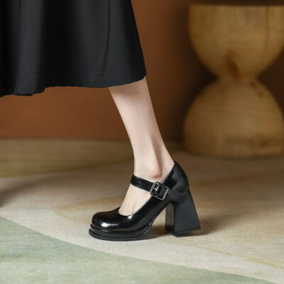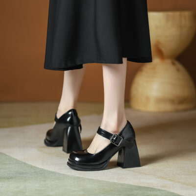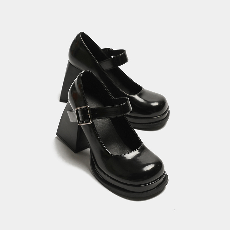 Trở thành đôi chân to và dài trong vài giây ~ Mary Jane gót dày phong cách cổ điển giày đơn nữ Giày búp bê Barbie jk gió giày cao gót đầu to 2618